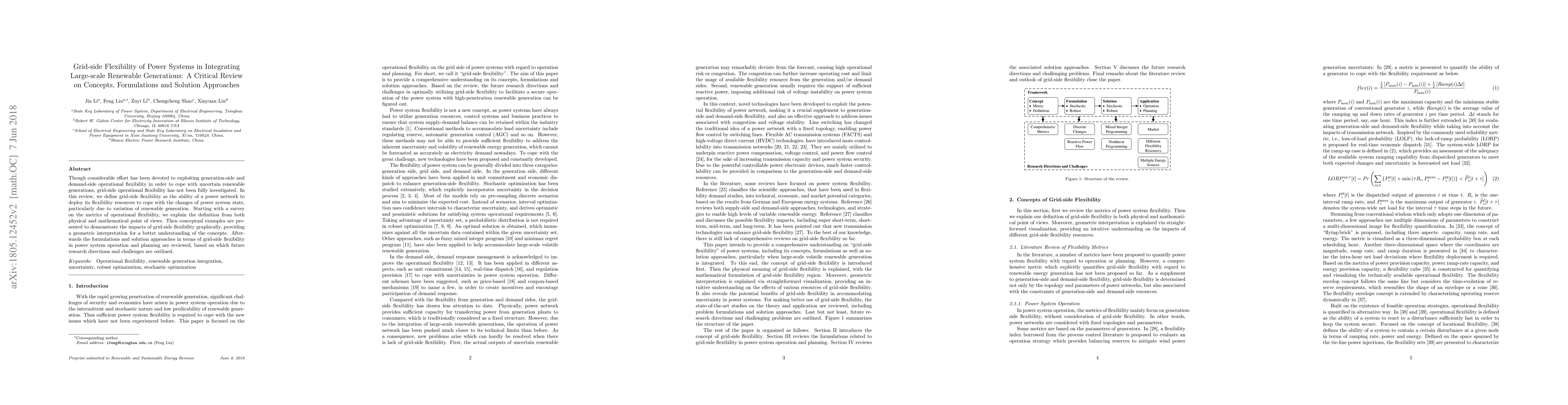 This review critically examines grid-side flexibility in power systems integrating large-scale renewable generation, defining it as the network's ability to manage changes due to renewable variability. It surveys operational flexibility metrics and solution approaches, highlighting future research challenges.