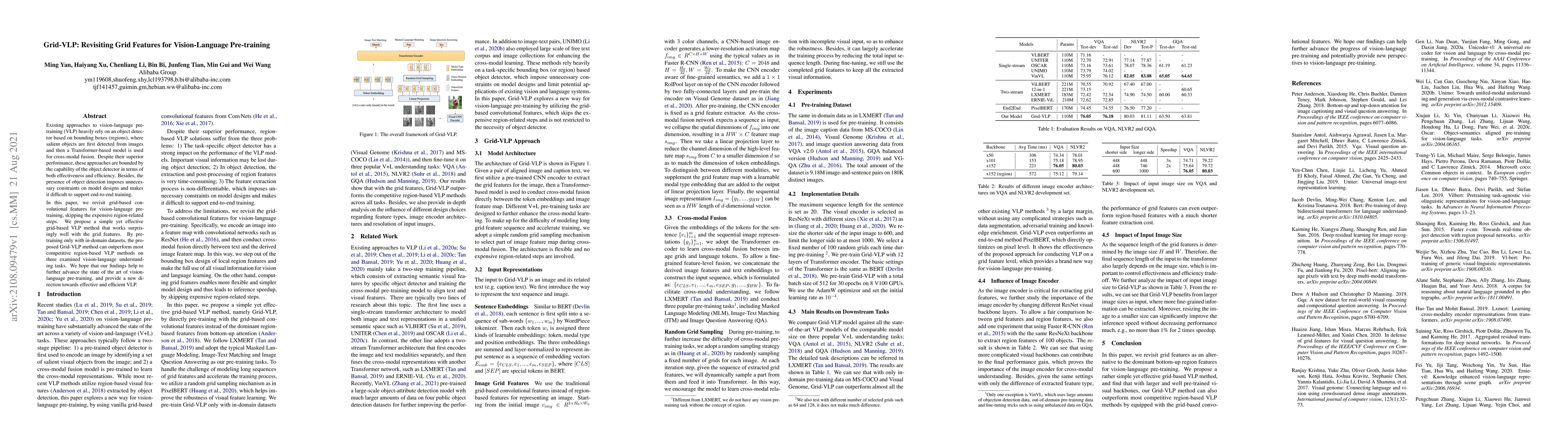 This paper proposes a grid-based vision-language pre-training method that leverages bottom-up attention for image captioning and visual question answering.