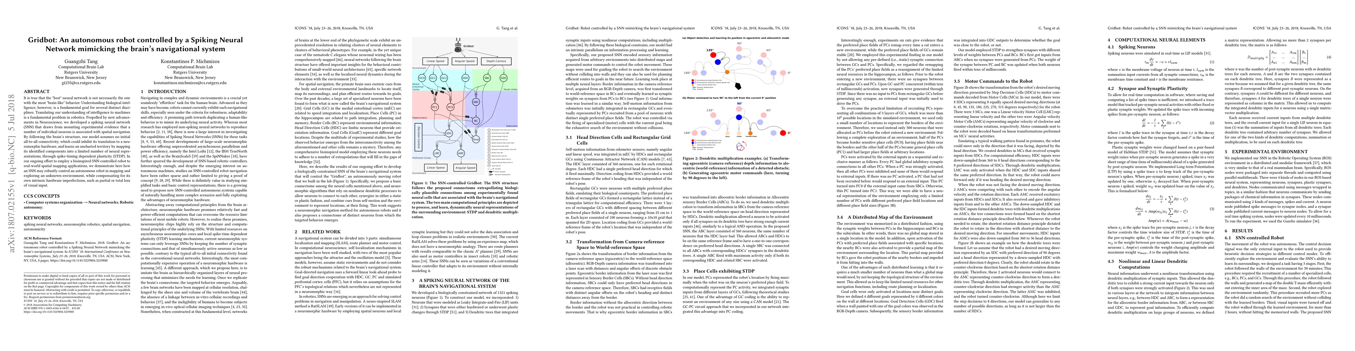 This paper presents a spiking neural network (SNN) inspired by biological navigation systems to control an autonomous robot, Gridbot, for spatial mapping and exploration. The SNN, utilizing spike-timing dependent plasticity, enables the robot to navigate and adapt to unknown environments despite hardware imperfections.