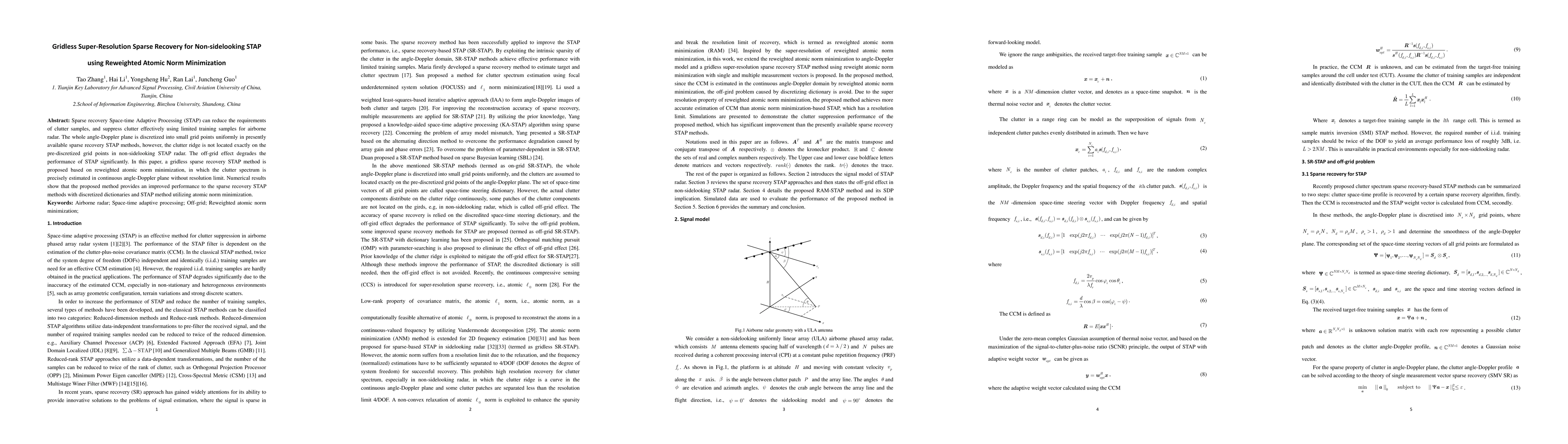 Sparse recovery Space-time Adaptive Processing (STAP) can reduce the requirements of clutter samples, and suppress clutter effectively using limited training samples for airborne radar. The whole angle-Doppler plane is discretized into small grid points uniformly in presently available sparse recovery STAP methods, however, the clutter ridge is not located exactly on the pre-discretized grid points in non-sidelooking STAP radar. The off-grid effect degrades the performance of STAP significantly. In this paper, a gridless sparse recovery STAP method is proposed based on reweighted atomic norm minimization, in which the clutter spectrum is precisely estimated in continuous angle-Doppler plane without resolution limit. Numerical results show that the proposed method provides an improved performance to the sparse recovery STAP methods with discretized dictionaries and STAP method utilizing atomic norm minimization.