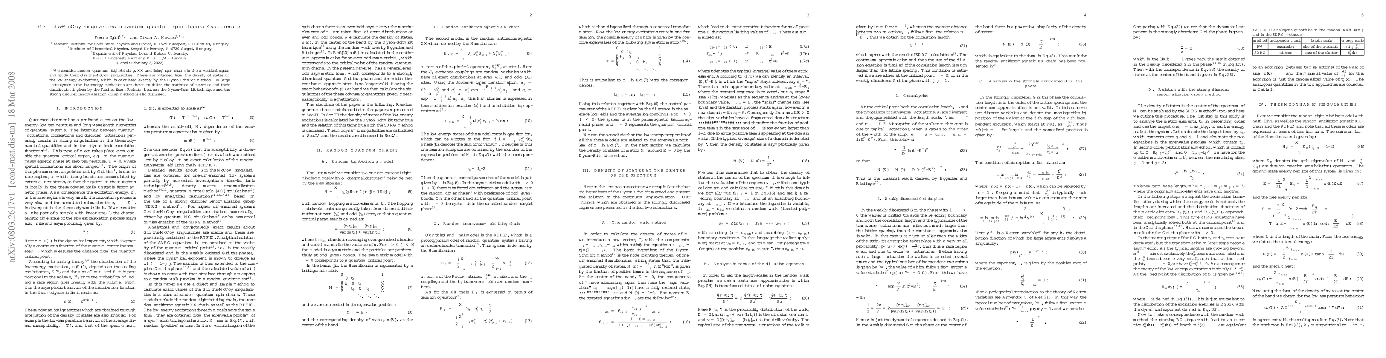 This paper investigates Griffiths-McCoy singularities in random quantum spin chains using the Dyson-Schmidt method to calculate the density of low-energy states exactly. It reveals that the low-energy excitations follow Fr\'echet distribution statistics, and discusses the connection between the Dyson-Schmidt technique and the strong disorder renormalization group method.