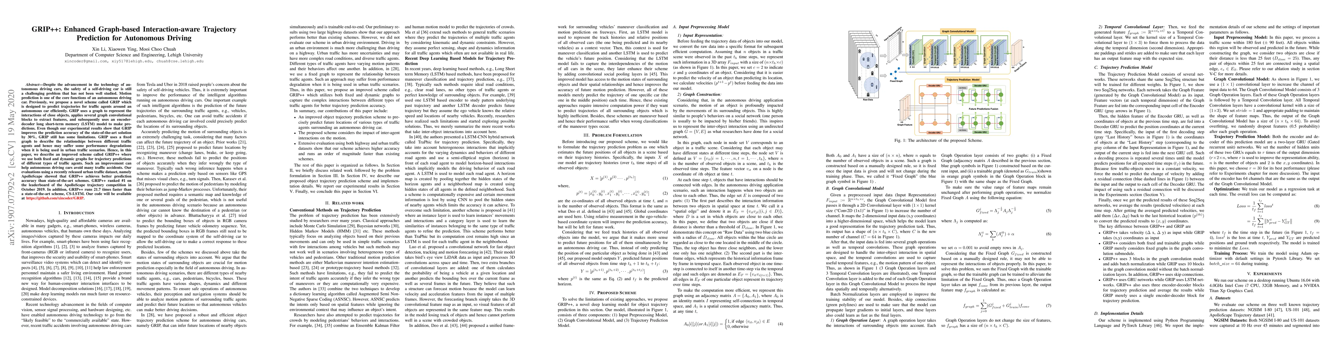 GRIP++ enhances GRIP's graph-based interaction-aware trajectory prediction for autonomous driving by incorporating both fixed and dynamic graphs, improving prediction accuracy and efficiency, and achieving top results in the ApolloScape competition.