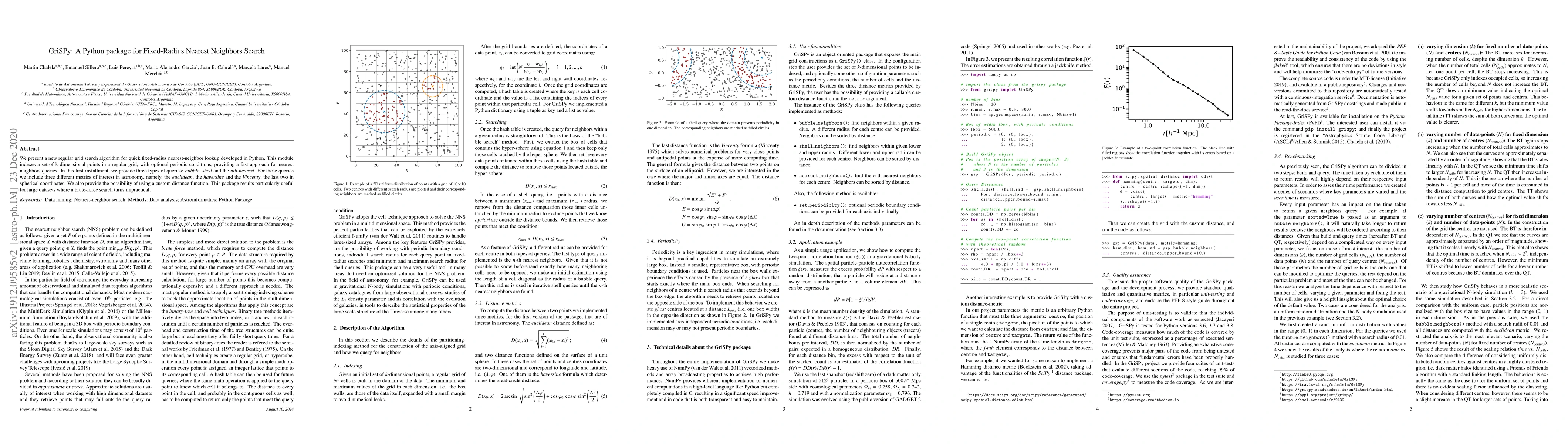 GriSPy presents a novel, efficient grid-based approach for fixed-radius nearest neighbor searches, offering flexibility with various distance metrics and periodic boundary conditions, which is particularly beneficial for large-scale astronomical datasets.