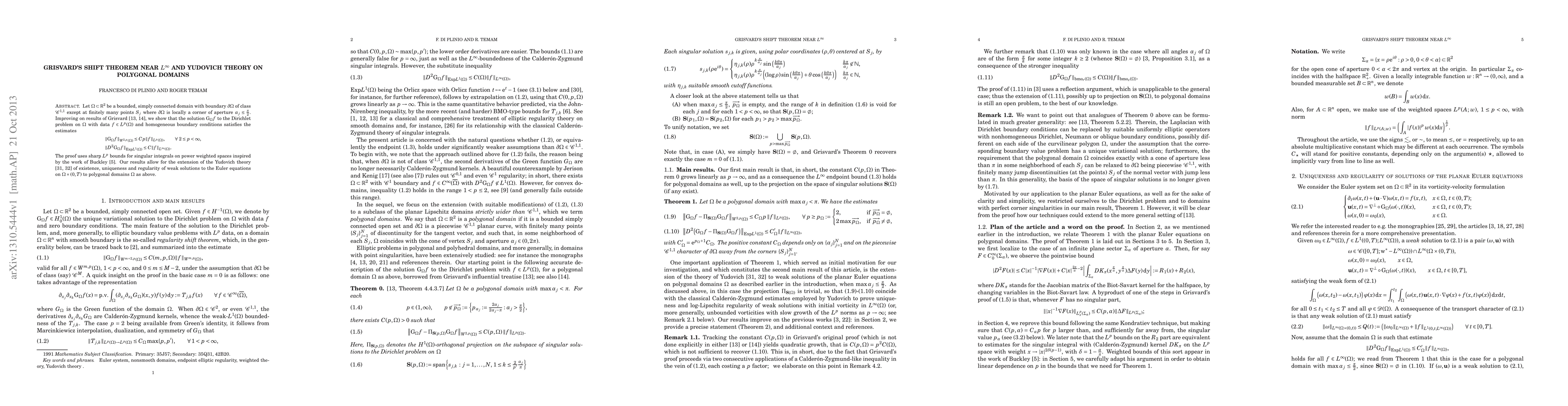 Let Omega be a bounded, simply connected domain with boundary of class C^{1,1} except at finitely many points S_j where the boundary is locally a corner of aperture alpha_j<=pi/2. Improving on results of Grisvard, we show that the solution Gf to the Dirichlet problem on Omega with data f in L^infinity(Omega) and homogeneous boundary conditions has exponentially integrable second derivatives. The proof uses sharp L^p bounds for singular integrals on power weighted spaces inspired by the work of Buckley. Our results allow for the extension of the Yudovich theory of existence, uniqueness and regularity of weak solutions to the Euler equations on Omega x (0,T) to polygonal domains Omega as above.