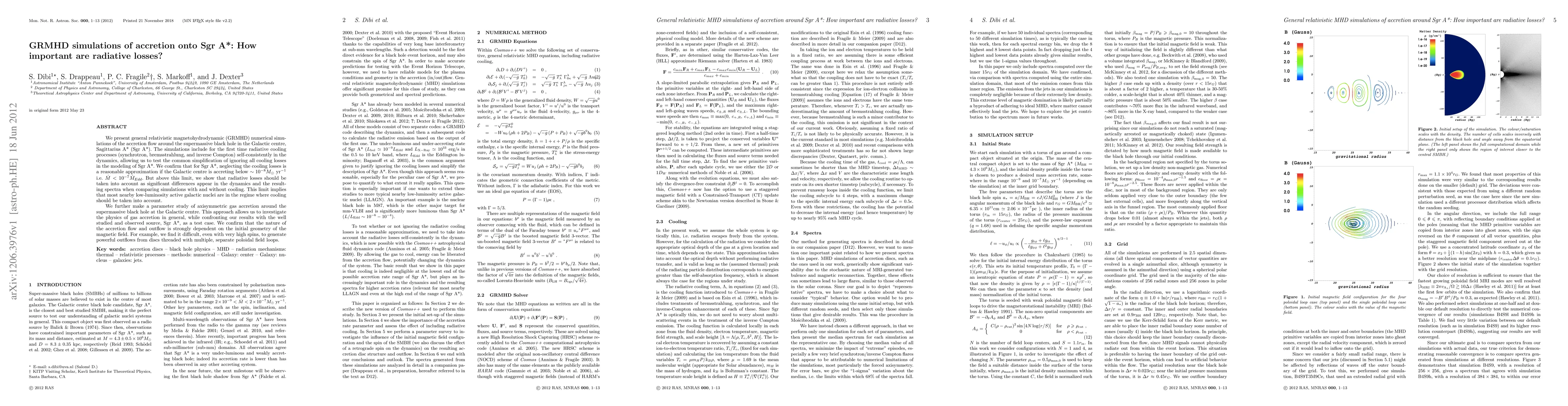 This paper presents GRMHD simulations of accretion onto Sgr A* that include radiative cooling processes, showing that cooling losses can be neglected for accretion rates below ~10^{-8} Msun/yr but must be considered above this threshold. The study also finds that the accretion flow's nature and outflows are heavily influenced by the initial magnetic field geometry.