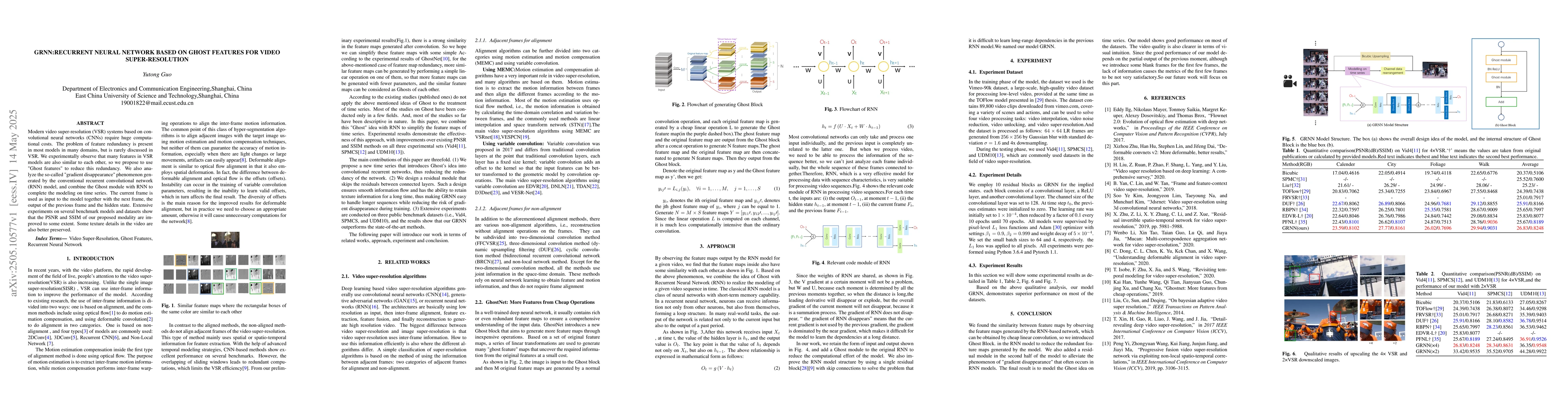 Modern video super-resolution (VSR) systems based on convolutional neural networks (CNNs) require huge computational costs. The problem of feature redundancy is present in most models in many domains, but is rarely discussed in VSR. We experimentally observe that many features in VSR models are also similar to each other, so we propose to use "Ghost features" to reduce this redundancy. We also analyze the so-called "gradient disappearance" phenomenon generated by the conventional recurrent convolutional network (RNN) model, and combine the Ghost module with RNN to complete the modeling on time series. The current frame is used as input to the model together with the next frame, the output of the previous frame and the hidden state. Extensive experiments on several benchmark models and datasets show that the PSNR and SSIM of our proposed modality are improved to some extent. Some texture details in the video are also better preserved.