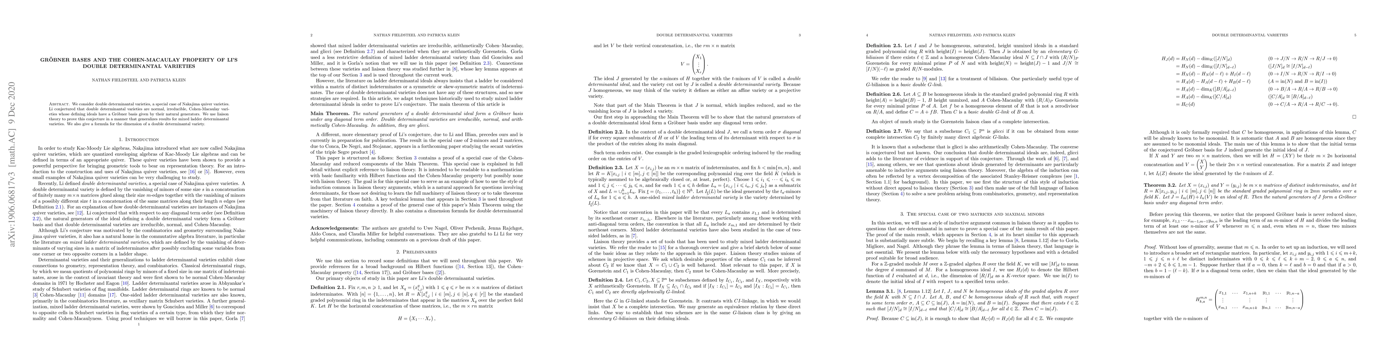 This paper proves Li's conjecture regarding the normality, irreducibility, and Cohen-Macaulay property of double determinantal varieties using liaison theory, while also providing a formula for their dimension. The defining ideals of these varieties are shown to have a Gröbner basis given by their natural generators.