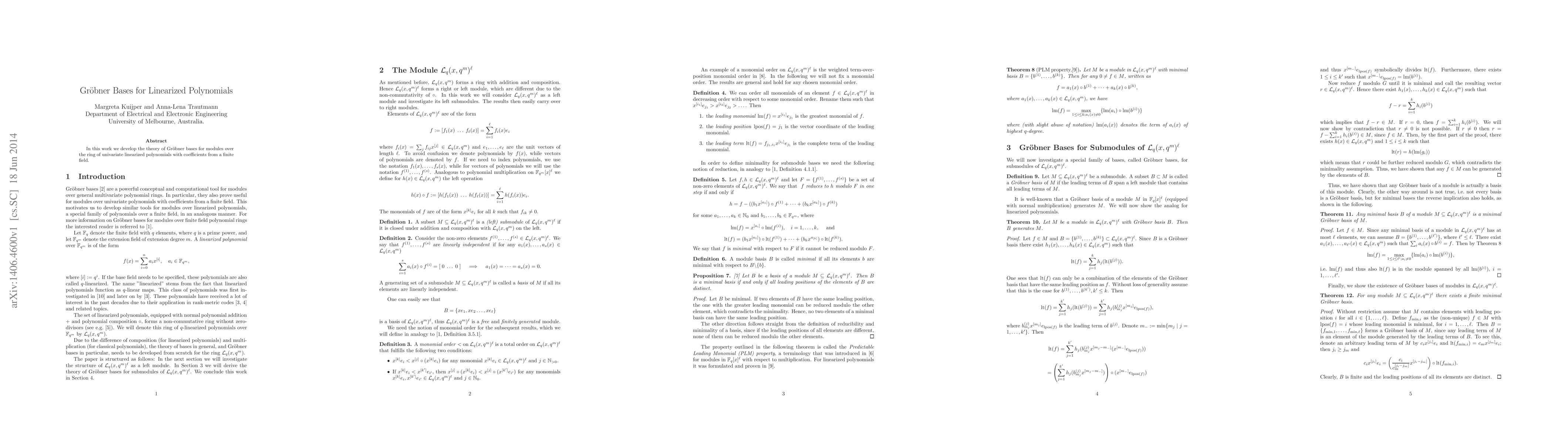 This paper develops the theoretical framework for Gröbner bases in modules over the ring of univariate linearized polynomials, utilizing coefficients from a finite field. The work aims to extend the traditional Gröbner basis theory to this new algebraic structure.