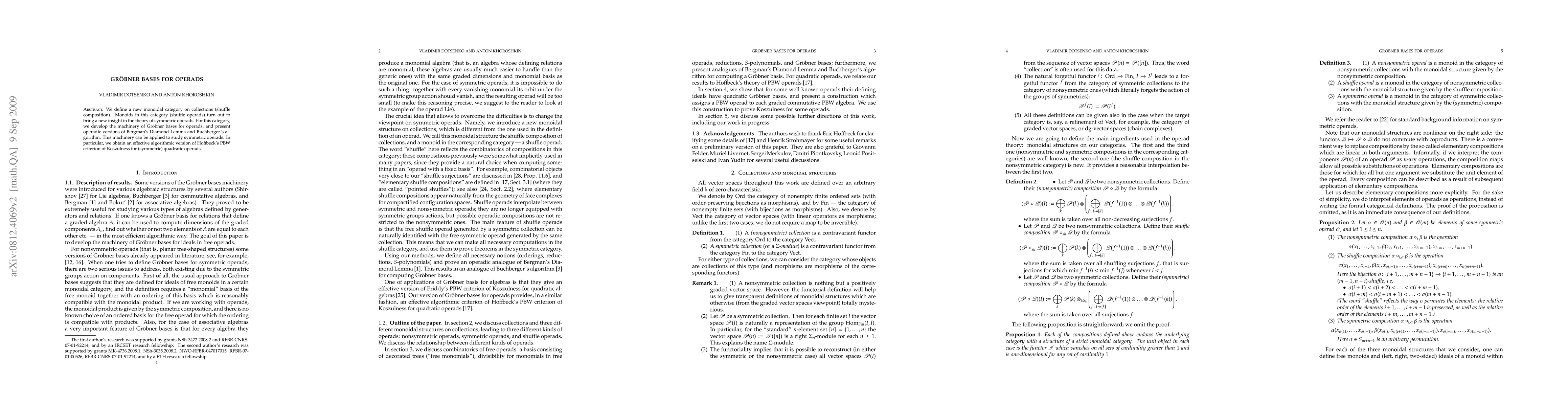 This paper introduces a monoidal category on collections with shuffle composition and develops Gröbner bases for operads within this framework. It presents operadic versions of Bergman's Diamond Lemma and Buchberger's algorithm, leading to an algorithmic version of Hoffbeck's PBW criterion for Koszulness in quadratic symmetric operads.