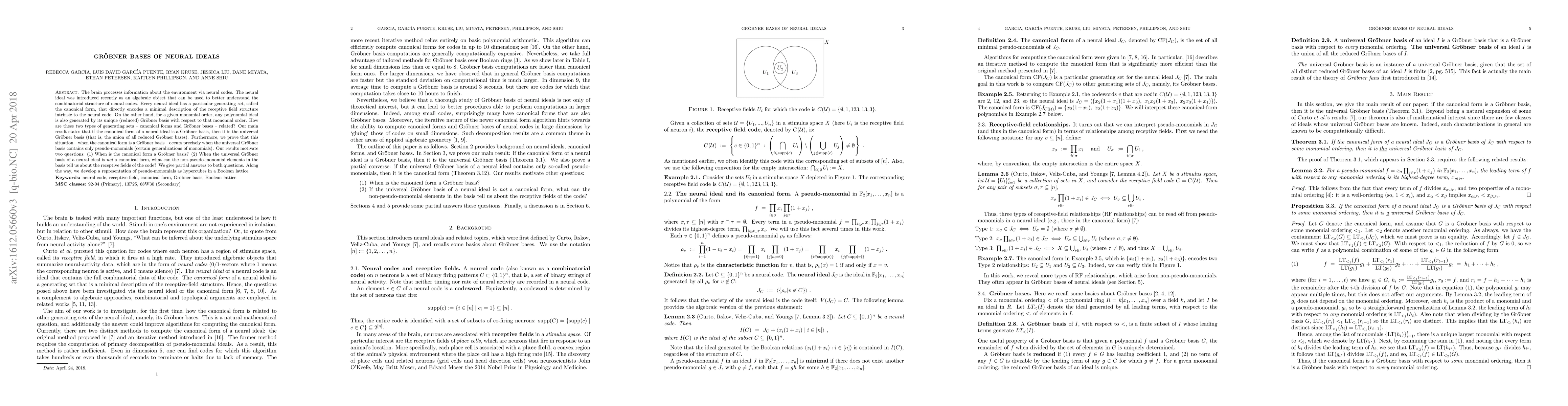 This paper explores the relationship between canonical forms of neural ideals and Gröbner bases, showing that when the canonical form is a Gröbner basis, it is the universal Gröbner basis containing only pseudo-monomials. It also investigates conditions under which the canonical form is a Gröbner basis and the implications of non-pseudo-monomial elements in the basis for neural codes' receptive fields.