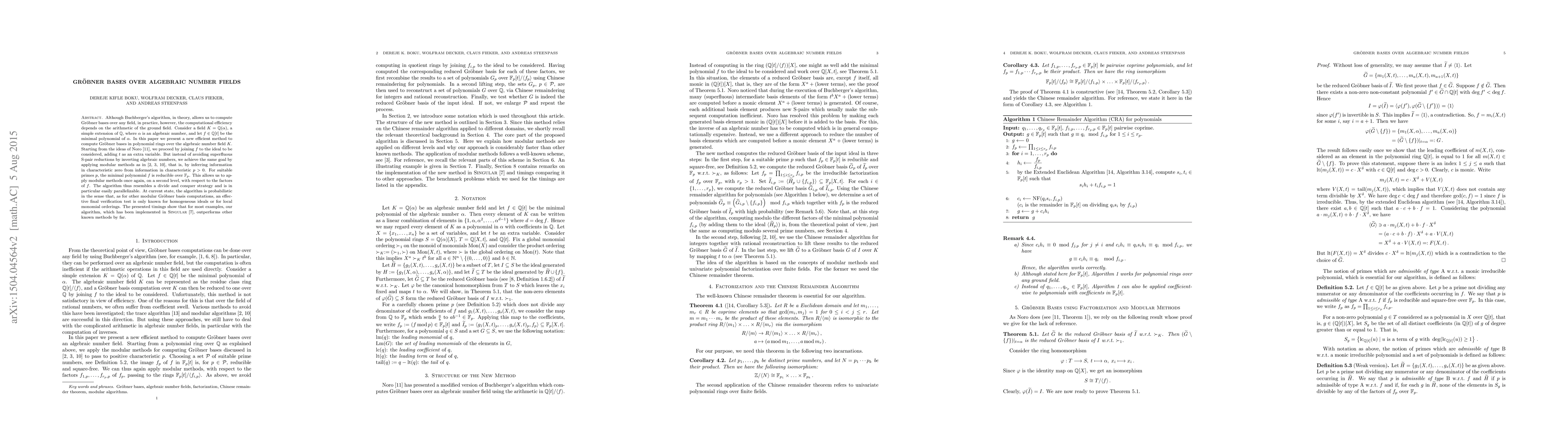 Although Buchberger's algorithm, in theory, allows us to compute Gr\"obner bases over any field, in practice, however, the computational efficiency depends on the arithmetic of the ground field. Consider a field $K = \mathbb{Q}(\alpha)$, a simple extension of $\mathbb{Q}$, where $\alpha$ is an algebraic number, and let $f \in \mathbb{Q}[t]$ be the minimal polynomial of $\alpha$. In this paper we present a new efficient method to compute Gr\"obner bases in polynomial rings over the algebraic number field $K$. Starting from the ideas of Noro [Noro, 2006], we proceed by joining $f$ to the ideal to be considered, adding $t$ as an extra variable. But instead of avoiding superfluous S-pair reductions by inverting algebraic numbers, we achieve the same goal by applying modular methods as in [Arnold, 2003; B\"ohm et al., 2015; Idrees et al., 2011], that is, by inferring information in characteristic zero from information in characteristic $p > 0$. For suitable primes $p$, the minimal polynomial $f$ is reducible over $\mathbb{F}_p$. This allows us to apply modular methods once again, on a second level, with respect to the factors of $f$. The algorithm thus resembles a divide and conquer strategy and is in particular easily parallelizable. At current state, the algorithm is probabilistic in the sense that, as for other modular Gr\"obner basis computations, an effective final verification test is only known for homogeneous ideals or for local monomial orderings. The presented timings show that for most examples, our algorithm, which has been implemented in SINGULAR, outperforms other known methods by far.