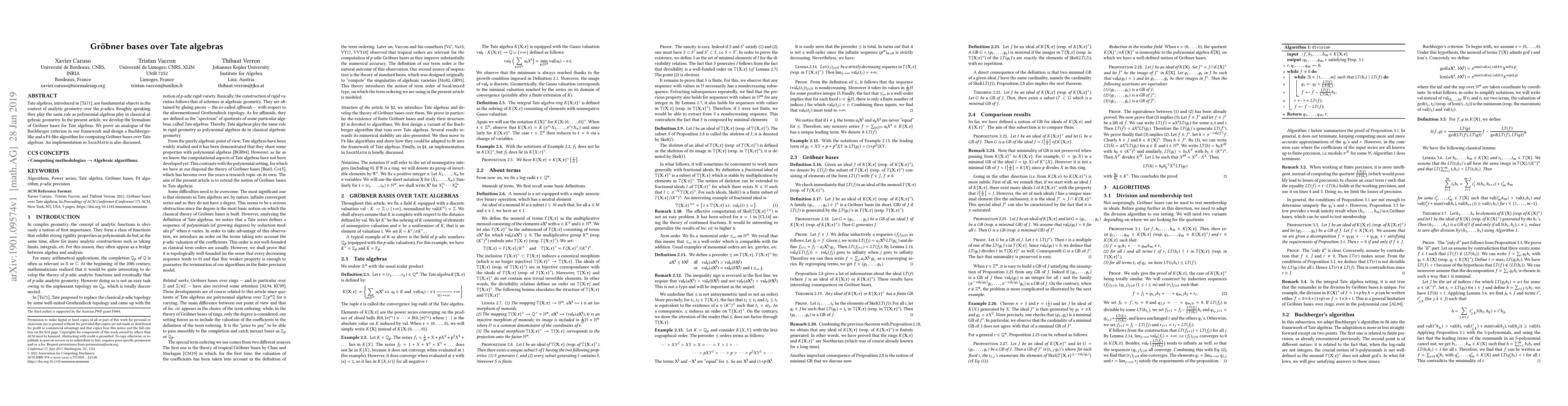 The research develops the formalism of Gröbner bases for Tate algebras, proving an analogue of the Buchberger criterion and designing Buchberger-like and F4-like algorithms for computing Gröbner bases over Tate algebras, with an implementation discussed in SageMath.
