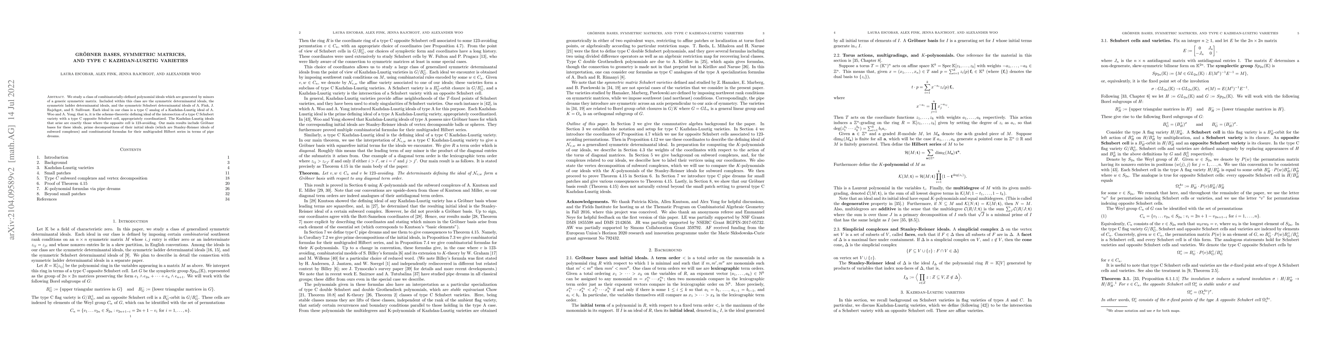 This paper investigates polynomial ideals generated by minors of a generic symmetric matrix, establishing them as type C analogs of Kazhdan-Lusztig ideals. It provides Gröbner bases, prime decompositions, and combinatorial formulas for their multigraded Hilbert series.