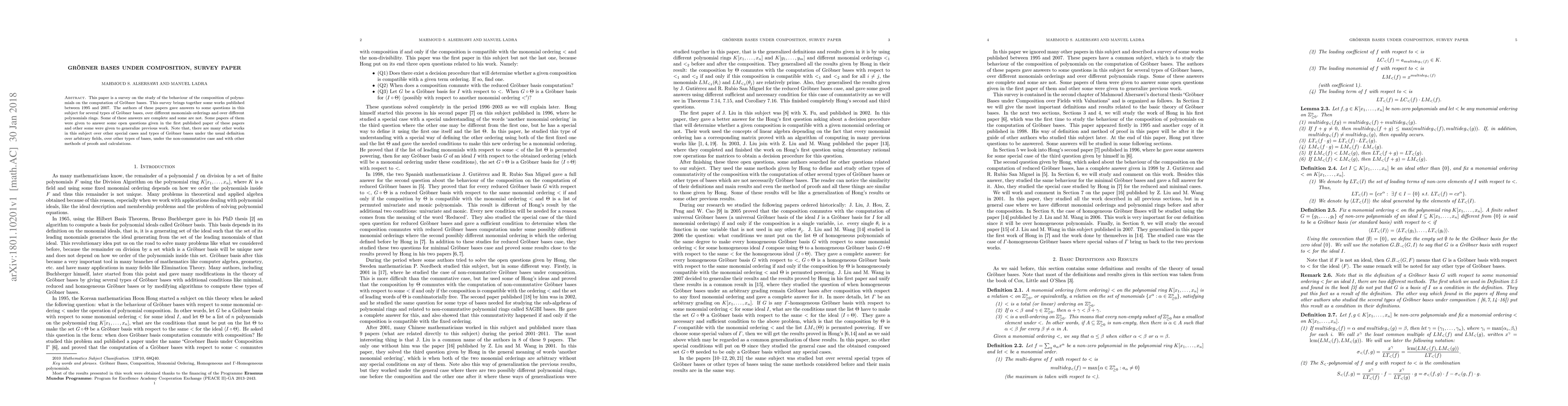 This paper is a survey on the study of the behaviour of the composition of polynomials on the computation of Gr\"obner bases. This survey brings together some works published between 1995 and 2007. The authors of these papers gave answers to some questions in this subject for several types of Gr\"obner bases, over different monomials orderings and over different polynomials rings. Some of these answers are complete and some are not. Some papers of them were given to answer some open questions given in the first published paper of these papers and other some were given to generalize previous work. Note that, there are many other works in this subject over other special cases and types of Gr\"obner bases under the usual definition over arbitrary fields, over other types of bases, under the non-commutative case and with other methods of proofs and calculations.