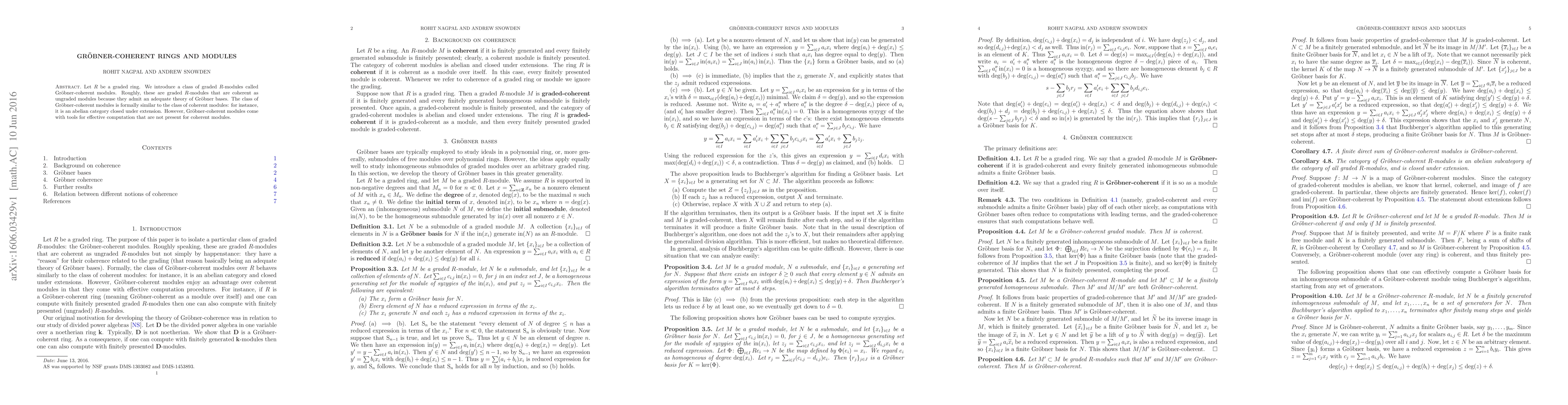 This paper introduces Gr\"obner-coherent modules, a class of graded $R$-modules that are coherent due to their support for Gr\"obner bases. These modules exhibit properties similar to coherent modules but offer enhanced computational tools.