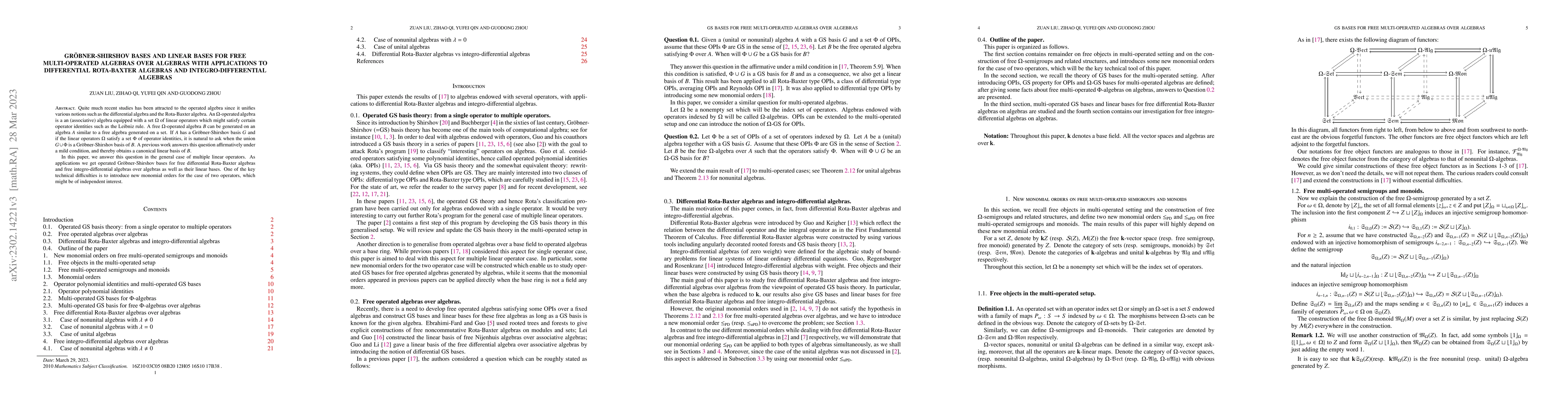Quite much recent studies has been attracted to the operated algebra since it unifies various notions such as the differential algebra and the Rota-Baxter algebra. An $\Omega$-operated algebra is a an (associative) algebra equipped with a set $\Omega$ of linear operators which might satisfy certain operator identities such as the Leibniz rule. A free $\Omega$-operated algebra $B$ can be generated on an algebra $A$ similar to a free algebra generated on a set. If $A$ has a Gr\"{o}bner-Shirshov basis $G$ and if the linear operators $\Omega$ satisfy a set $\Phi$ of operator identities, it is natural to ask when the union $G\cup \Phi$ is a Gr\"{o}bner-Shirshov basis of $B$. A previous work answers this question affirmatively under a mild condition, and thereby obtains a canonical linear basis of $B$. In this paper, we answer this question in the general case of multiple linear operators. As applications we get operated Gr\"{o}bner-Shirshov bases for free differential Rota-Baxter algebras and free integro-differential algebras over algebras as well as their linear bases. One of the key technical difficulties is to introduce new monomial orders for the case of two operators, which might be of independent interest.
