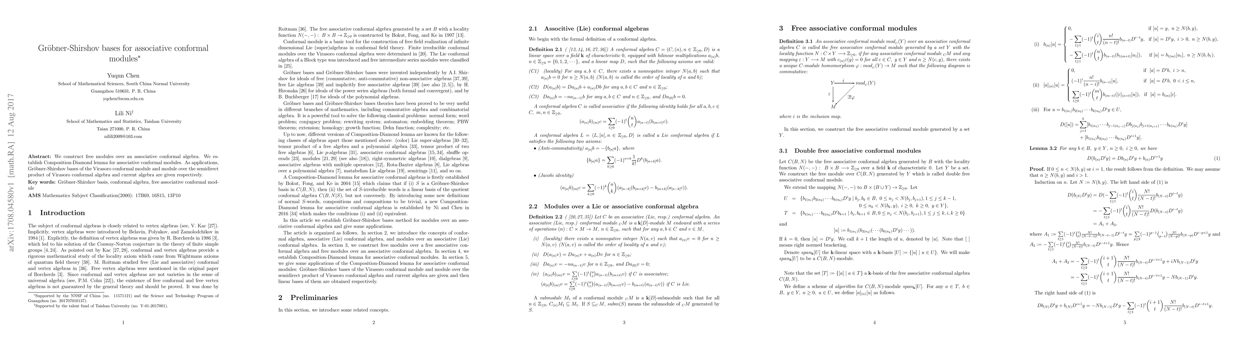 This paper constructs free modules over associative conformal algebras and establishes a Composition-Diamond lemma for these modules, subsequently providing Gröbner-Shirshov bases for the Virasoro conformal module and the module over the semidirect product of Virasoro and current algebra.