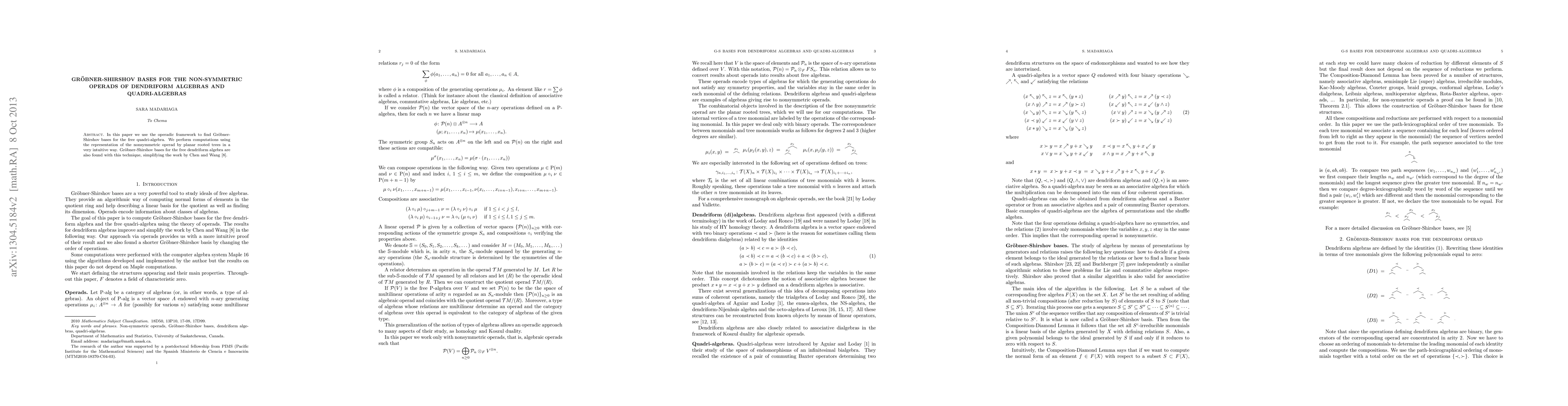 In this paper we use the operadic framework to find Gr\"obner-Shirshov bases for the free quadri-algebra. We perform computations using the representation of the nonsymmetric operad by planar rooted trees in a very intuitive way. Gr\"obner-Shirshov bases for the free dendriform algebra are also found with this technique, simplifying the work by Chen and Wang in 2010.