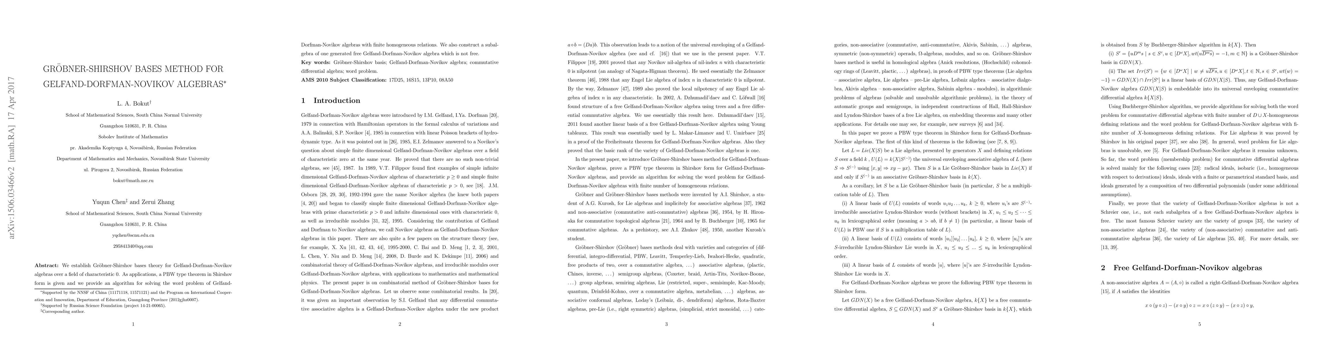 This paper establishes Gröbner-Shirshov bases theory for Gelfand-Dorfman-Novikov algebras, providing a PBW theorem and an algorithm for solving their word problem, and constructs a non-free subalgebra of a free Gelfand-Dorfman-Novikov algebra.