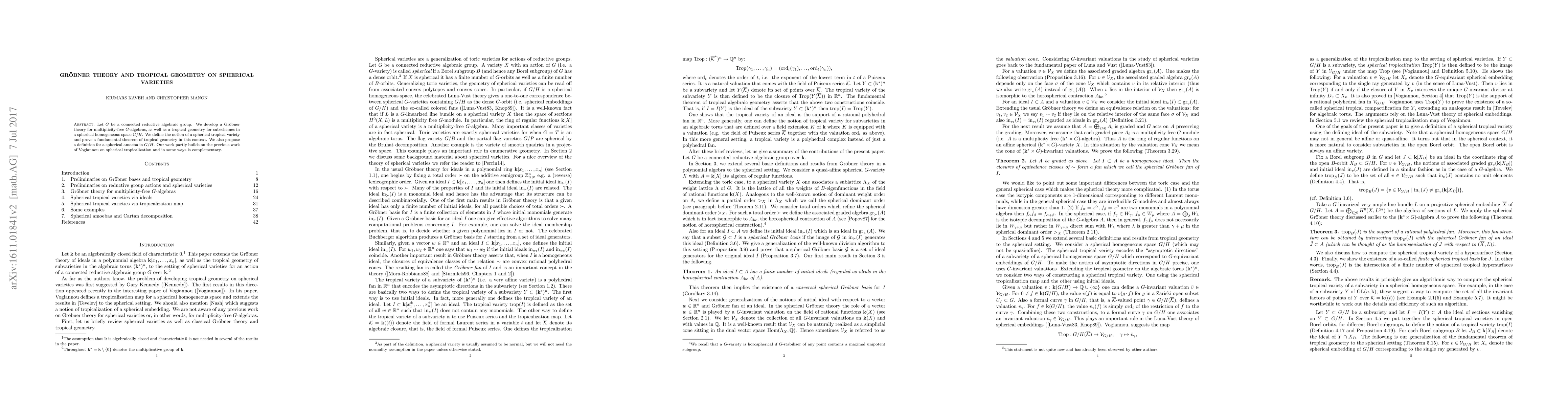 This paper develops a Gröbner theory for multiplicity-free $G$-algebras and a tropical geometry for subschemes in spherical homogeneous spaces $G/H$, introducing spherical tropical varieties and proposing a definition for spherical amoebas. This work complements Vogiannou's prior research on spherical tropicalization.