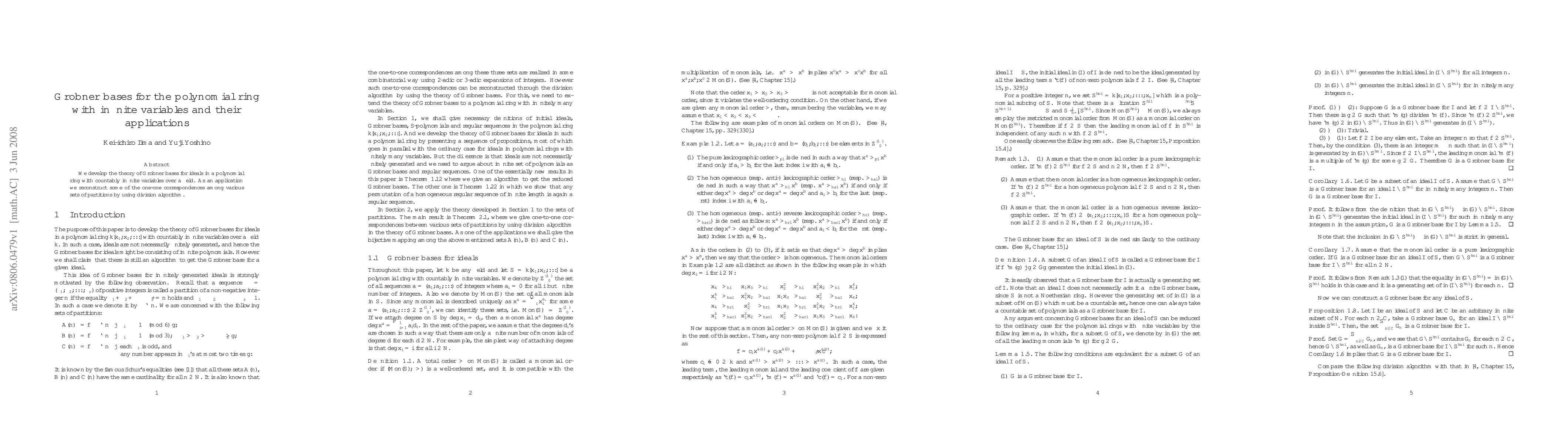 This research extends Gröbner basis theory to polynomial rings with countably infinite variables, establishing a division algorithm for these rings. It then applies this theory to recreate specific one-to-one correspondences among partitions.