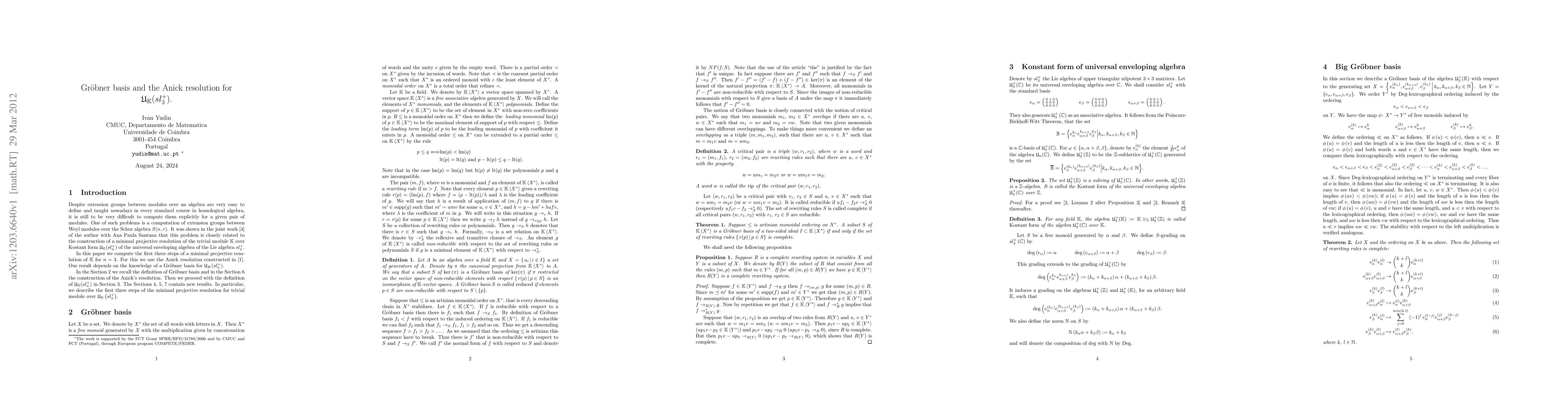 We compute three first steps of a minimal projective resolution for the trivial module over U_K(sl_3^+).