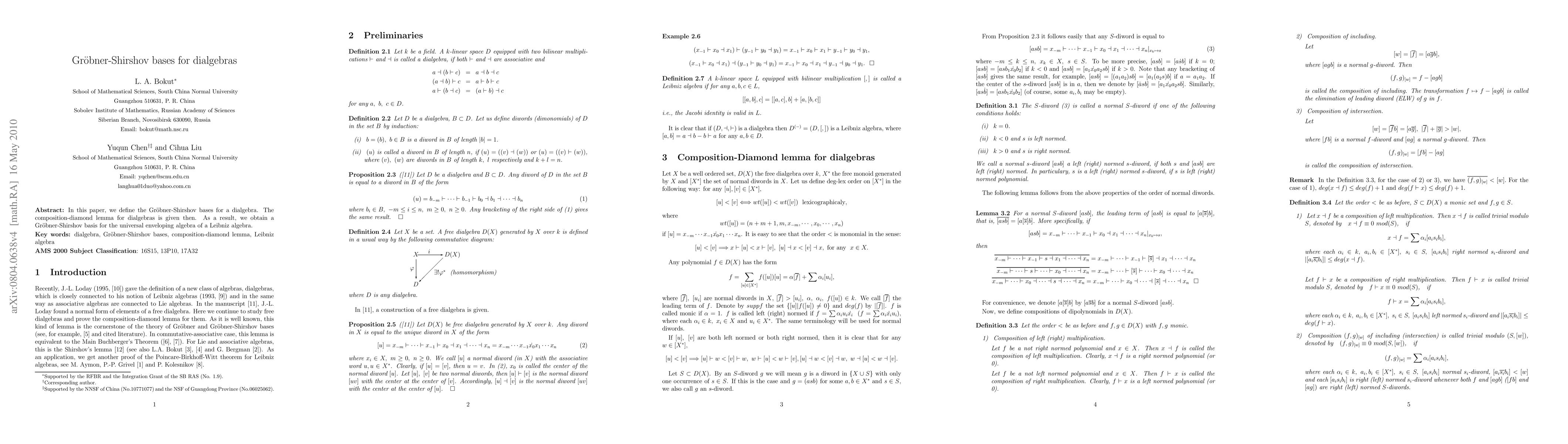 This paper introduces Gröbner-Shirshov bases for dialgebras and presents the Composition-Diamond lemma. It derives Gröbner-Shirshov bases for various specific dialgebras and establishes normal forms for these algebras.