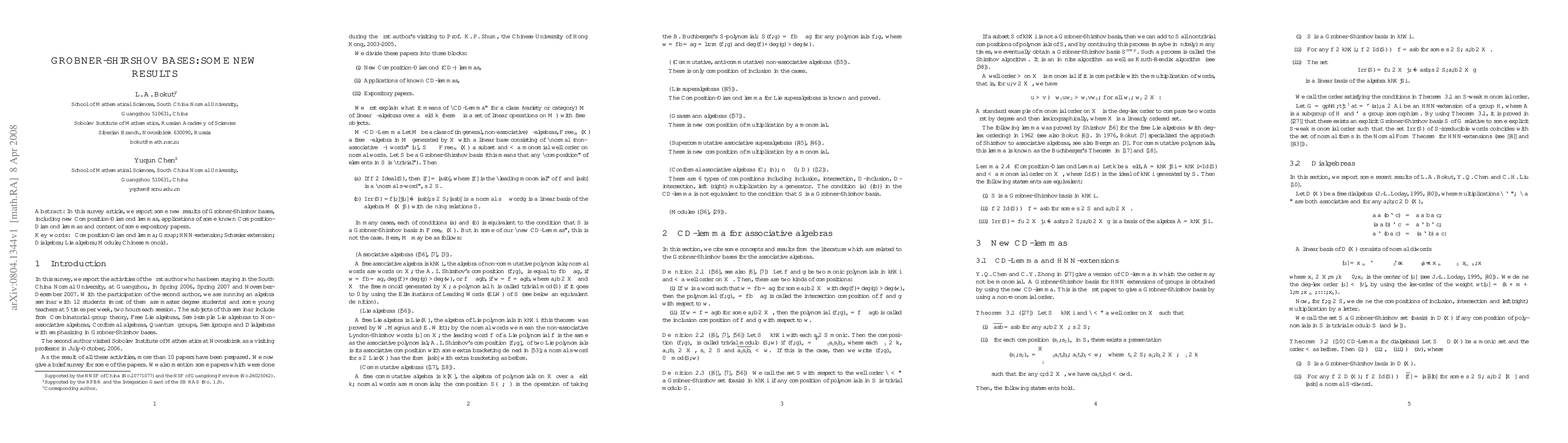 In this survey article, we report some new results of Groebner-Shirshov bases, including new Composition-Diamond lemmas, applications of some known Composition-Diamond lemmas and content of some expository papers.