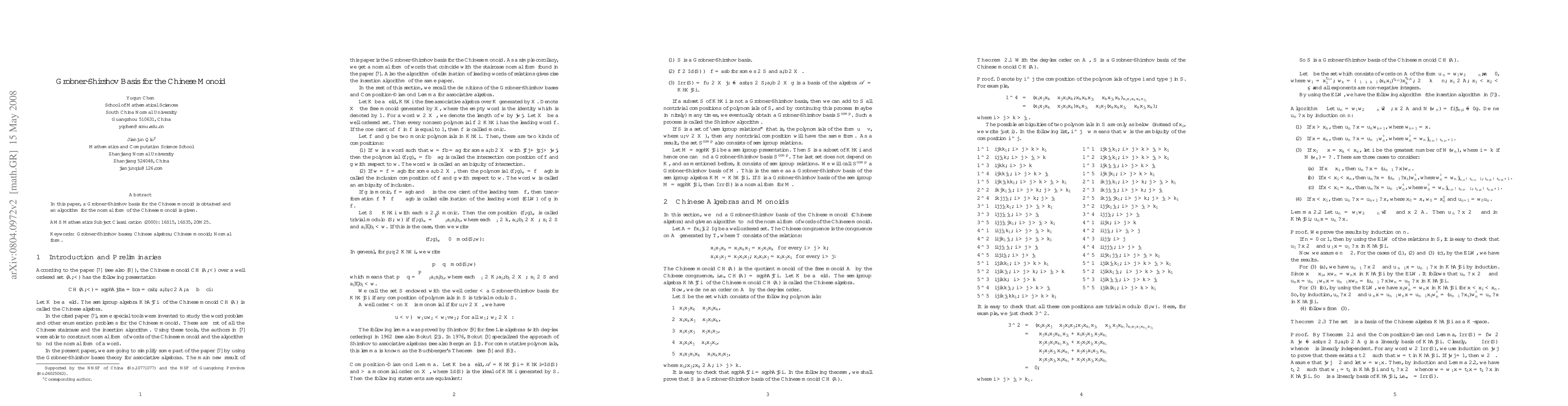Summary: This paper establishes a Groebner-Shirshov basis for the Chinese monoid and provides an algorithm to determine the normal form, facilitating the simplification of expressions within this algebraic structure.