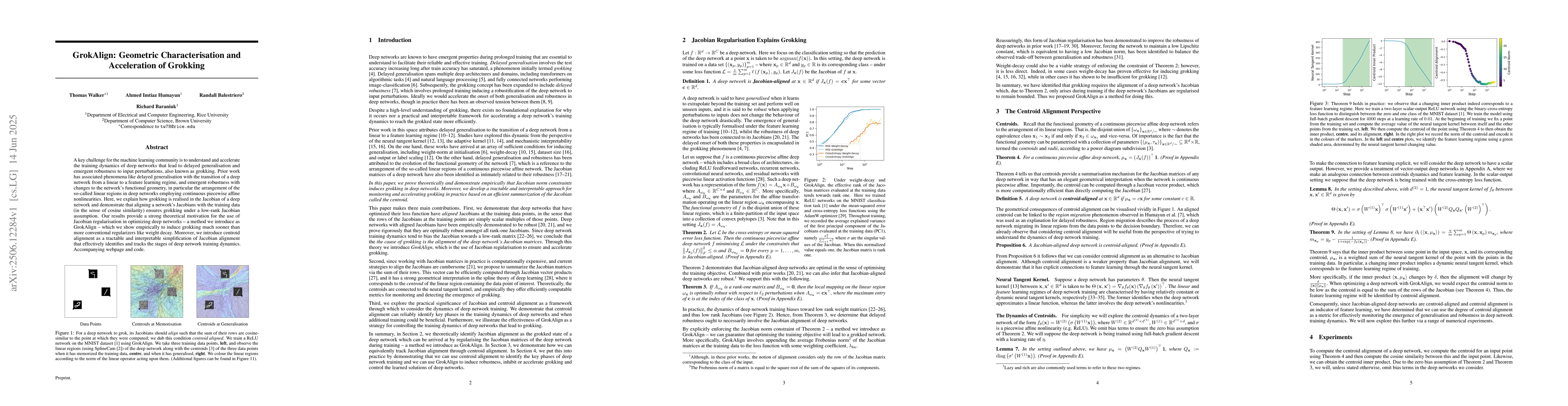 This research introduces GrokAlign, a method that aligns deep network Jacobians with training data to ensure grokking, a delayed generalization and emergent robustness phenomenon. GrokAlign, based on low-rank Jacobian assumption, induces grokking earlier than conventional regularizers. It also proposes centroid alignment, a simpler, interpretable approach to track training dynamics. The method is empirically validated and accompanied by a webpage and code.