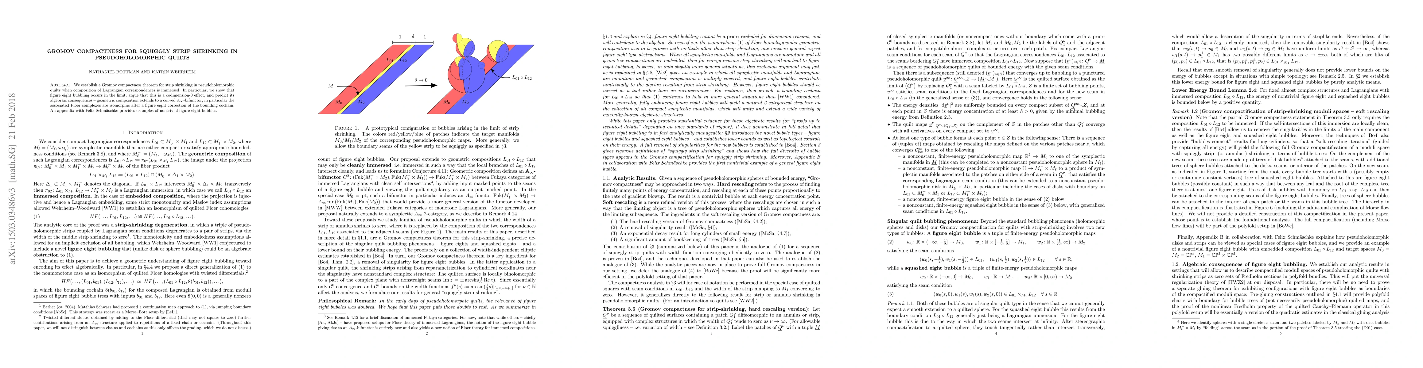 Summary: This paper establishes Gromov compactness for strip shrinking in pseudoholomorphic quilts, demonstrating figure eight bubbling as a codimension-0 effect, predicting algebraic consequences, and detailing the extension of geometric composition to a curved $A_\infty$-bifunctor. Examples of figure eight bubbles are provided in an appendix.