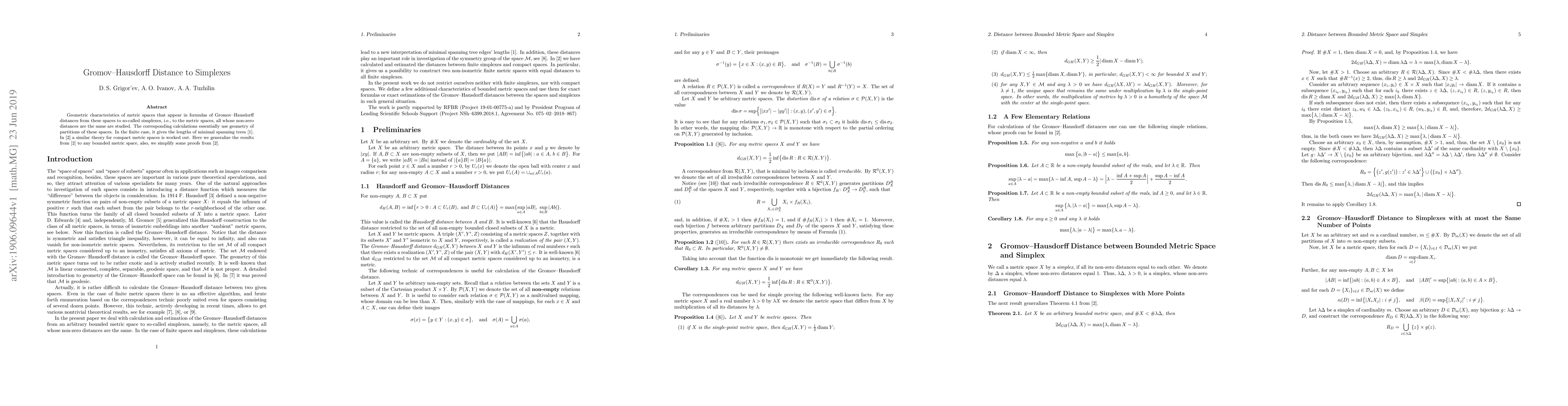 This paper studies the geometric characteristics of metric spaces in relation to their Gromov-Hausdorff distances to simplexes, providing a general theory for bounded metric spaces and simplifying prior proofs for compact metric spaces.
