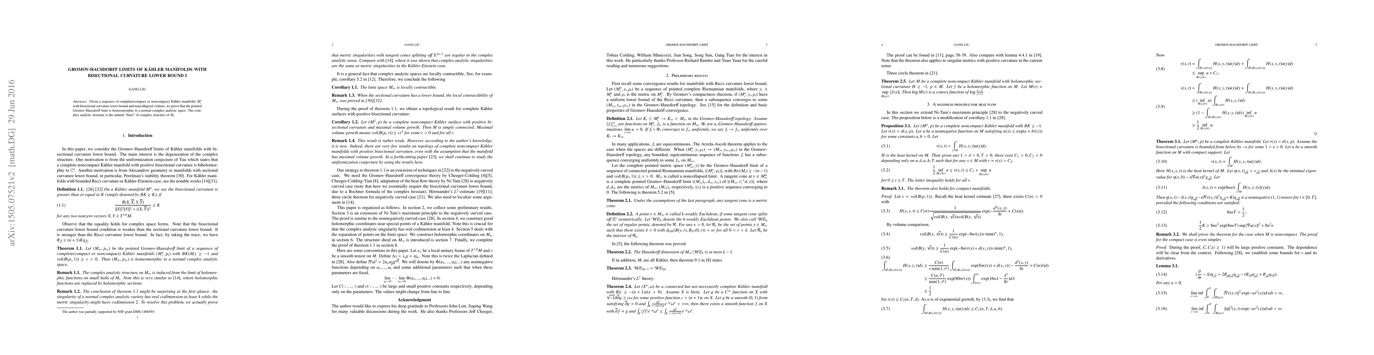 This paper proves that sequences of Kähler manifolds with bounded bisectional curvature and noncollapsed volume converge in the Gromov-Hausdorff sense to a normal complex analytic space, preserving the complex structure as the limit.