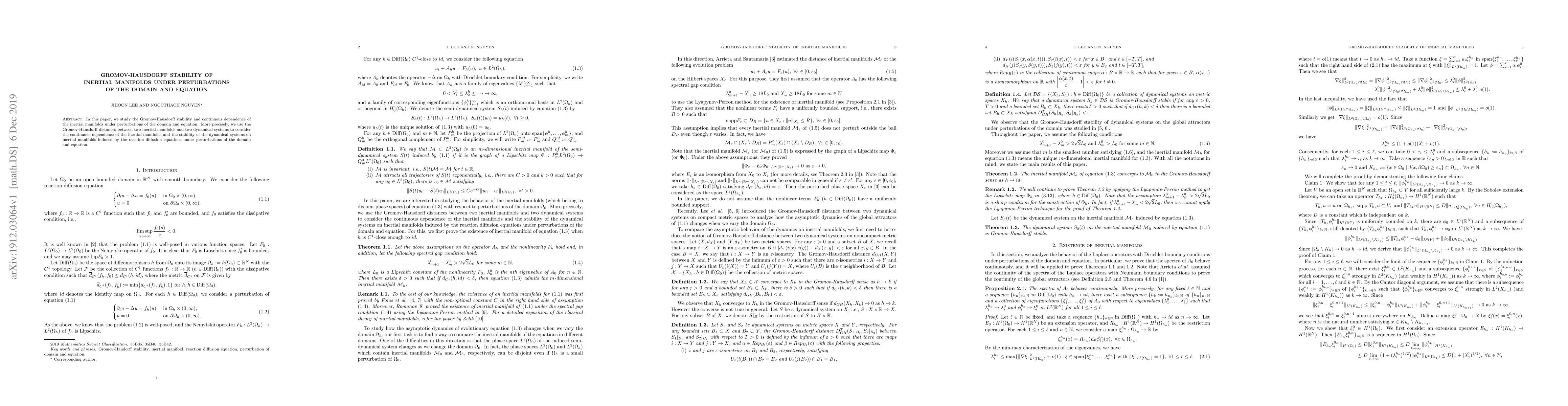 This paper investigates the Gromov-Hausdorff stability and continuous dependence of inertial manifolds under perturbations in both the domain and equation of reaction diffusion systems. It uses Gromov-Hausdorff distances to analyze the stability of dynamical systems on these perturbed inertial manifolds.
