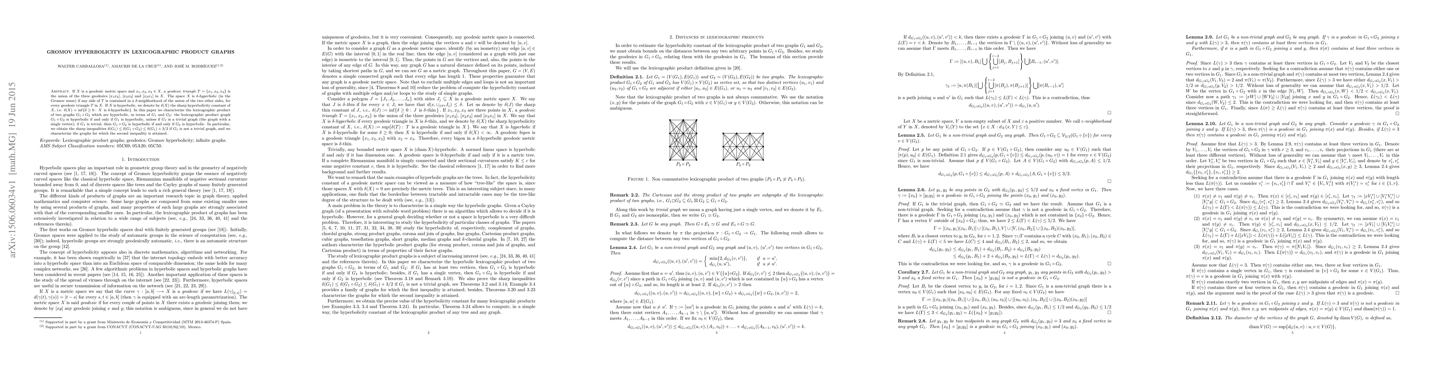This paper investigates the Gromov hyperbolicity of lexicographic product graphs, showing that the hyperbolicity of $G_1 \circ G_2$ depends on the hyperbolicity of $G_1$ and $G_2$, with sharp inequalities on the hyperbolicity constants.