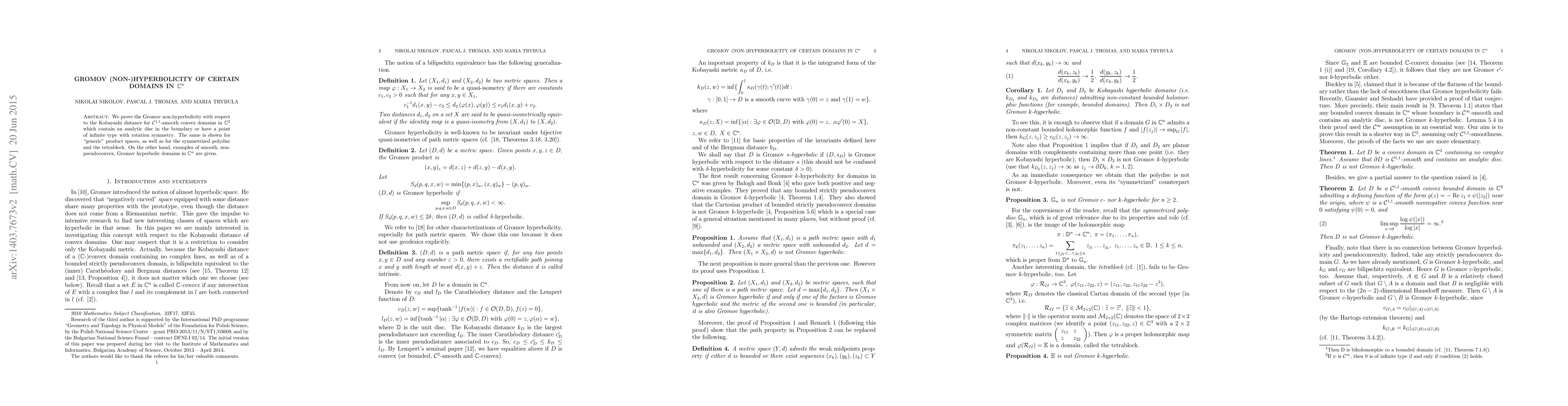 This paper demonstrates the non-hyperbolicity of the Kobayashi distance for certain $\mathcal{C}^{1,1}$-smooth convex domains in $\mathbb{C}^{2}$ containing analytic discs or points of infinite type with rotation symmetry. It also provides examples of smooth, non pseudoconvex, Gromov hyperbolic domains and proves the non-hyperbolicity of the symmetrized polydisc and the tetrablock.