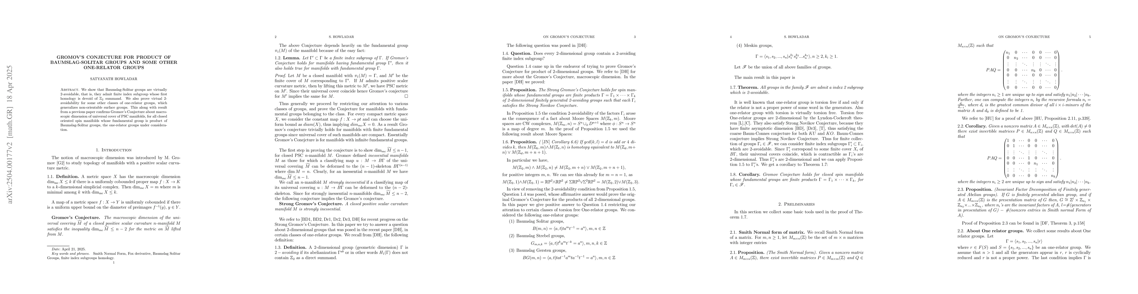Researchers prove that certain groups of manifolds with specific group structures have finite index subgroups whose homology is free from a particular summand, confirming Gromov's Conjecture about the macroscopic dimension of universal covers.
