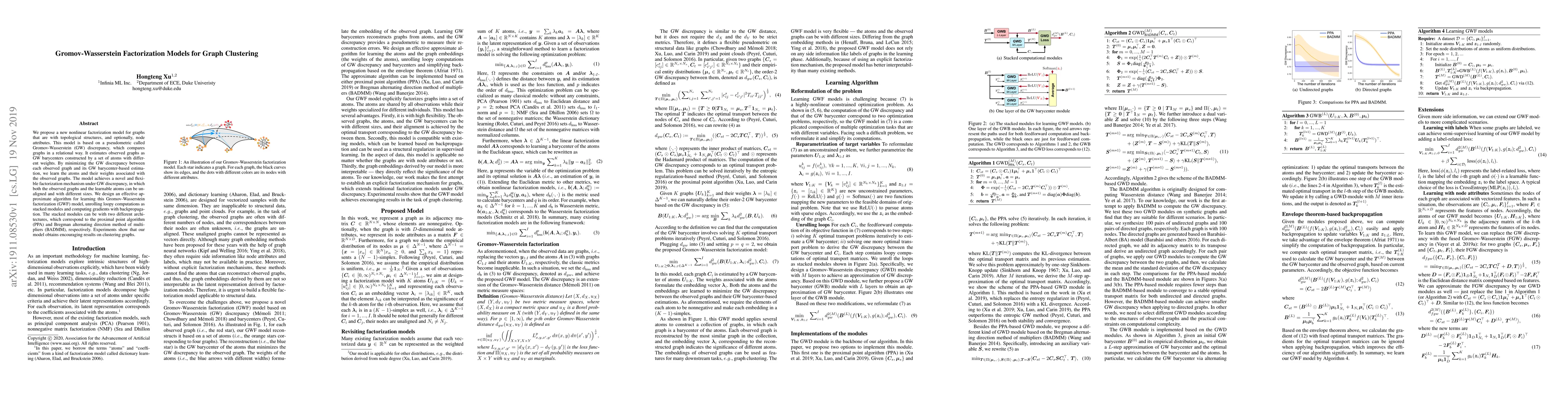 This paper proposes a novel nonlinear factorization model for graph clustering based on the Gromov-Wasserstein discrepancy, which allows for flexible comparison and estimation of graphs. The model learns atoms and their weights through an effective approximate algorithm, achieving promising results in clustering tasks.