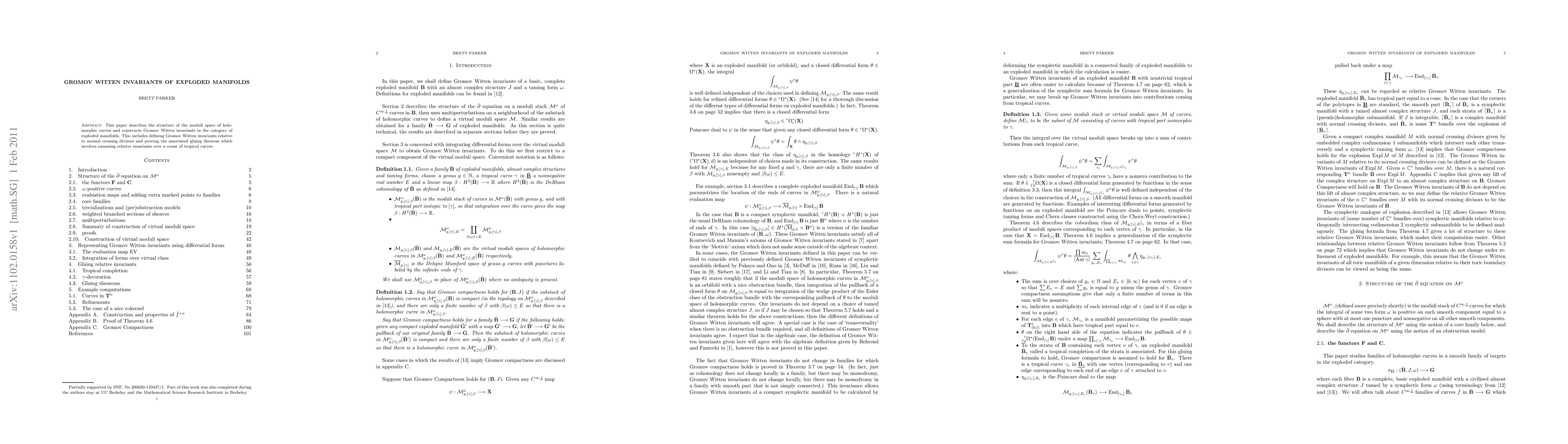 This paper develops Gromov Witten invariants for exploded manifolds by constructing the moduli space of holomorphic curves and proving a gluing theorem that sums relative invariants over tropical curves, defined relative to normal crossing divisors.