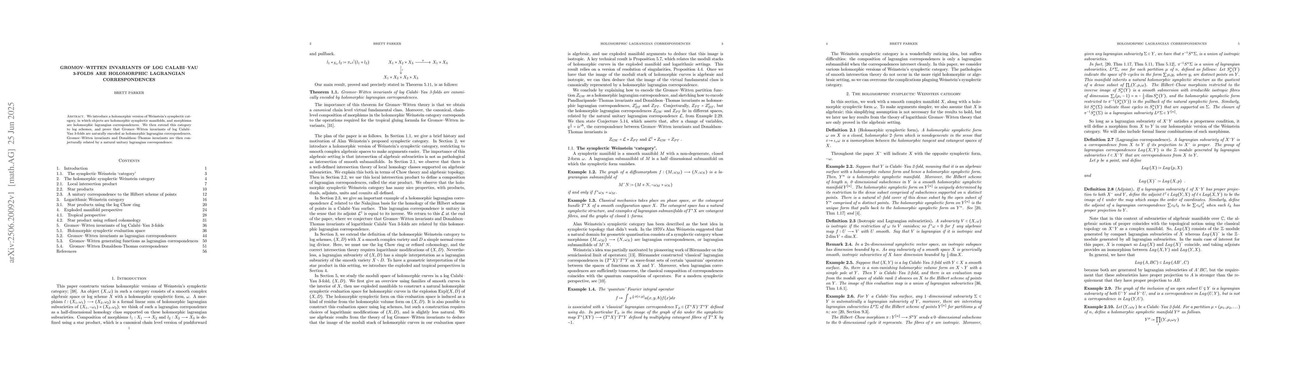 We introduce a holomorphic version of Weinstein's symplectic category, in which objects are holomorphic symplectic manifolds, and morphisms are holomorphic lagrangian correspondences. We then extend this category to log schemes, and prove that Gromov-Witten invariants of log Calabi-Yau 3-folds are naturally encoded as holomorphic lagrangian correspondences. Gromov-Witten invariants and Donaldson-Thomas invariants are then conjecturally related by a natural unitary lagrangian correspondence.