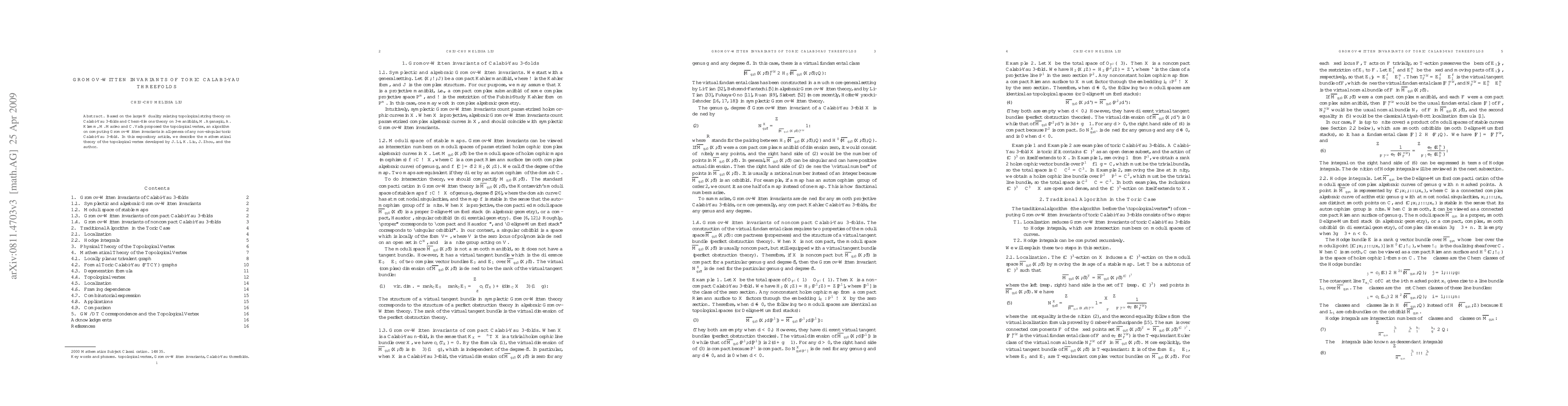 This paper discusses the mathematical theory behind the topological vertex algorithm, proposed by M. Aganagic et al., for computing Gromov-Witten invariants of non-singular toric Calabi-Yau threefolds, as developed by J. Li, K. Liu, J. Zhou, and the author. The work is grounded in large N duality linking topological string theory and Chern-Simons theory.