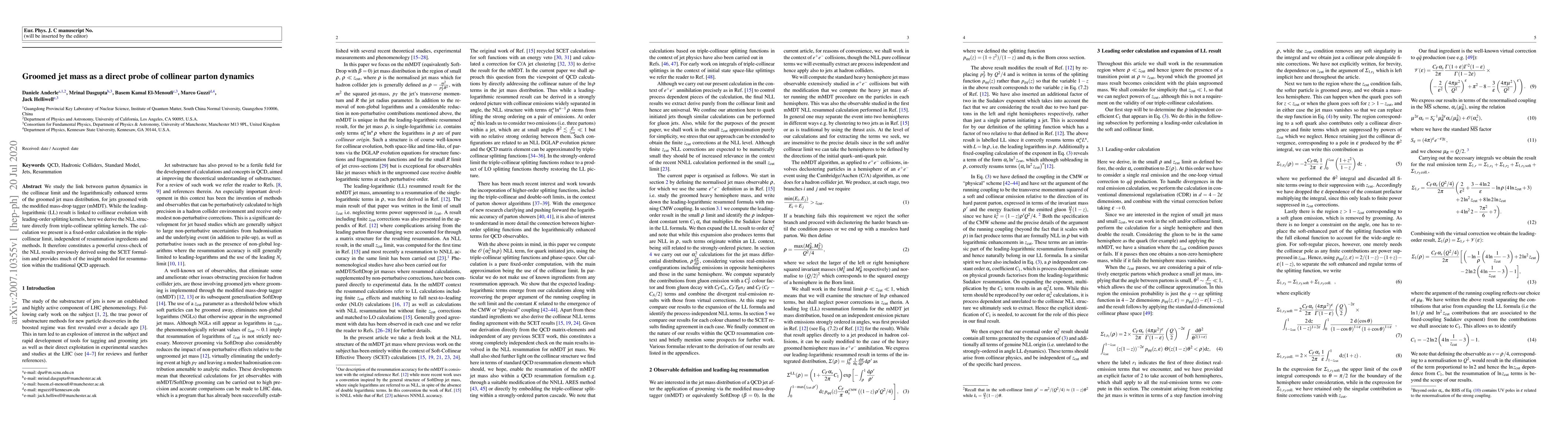 Researchers study the connection between parton dynamics in collinear limits and groomed jet mass distribution using a fixed-order calculation, providing insight for resummation in QCD.