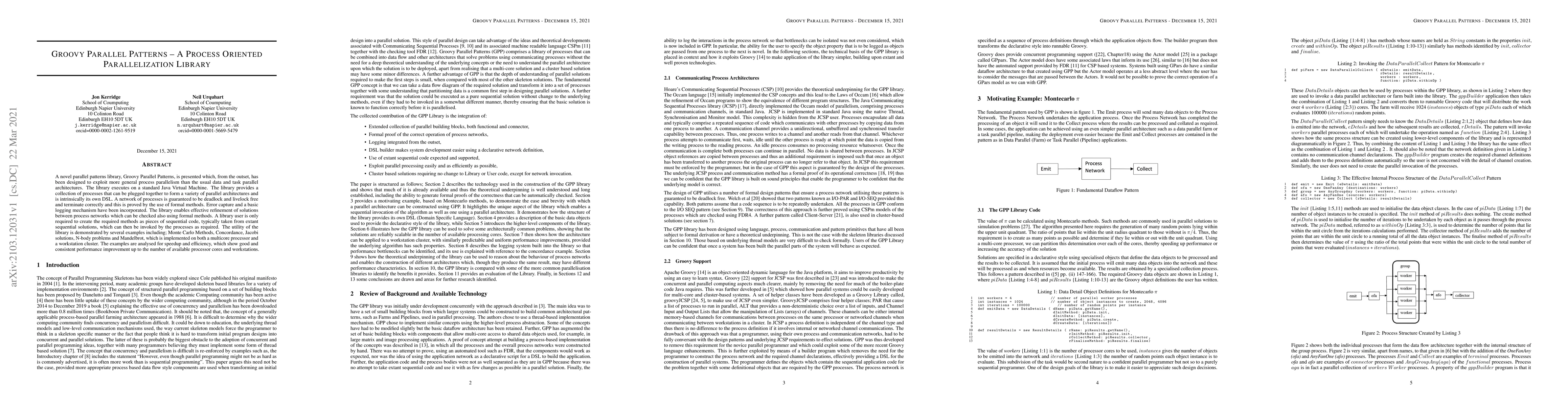 Groovy Parallel Patterns is a novel library designed for process-oriented parallelization, executing on a Java Virtual Machine and providing a collection of deadlock-free processes for various parallel architectures. It demonstrates effective performance improvements across multiple examples, including Monte Carlo Methods and N-body problems.