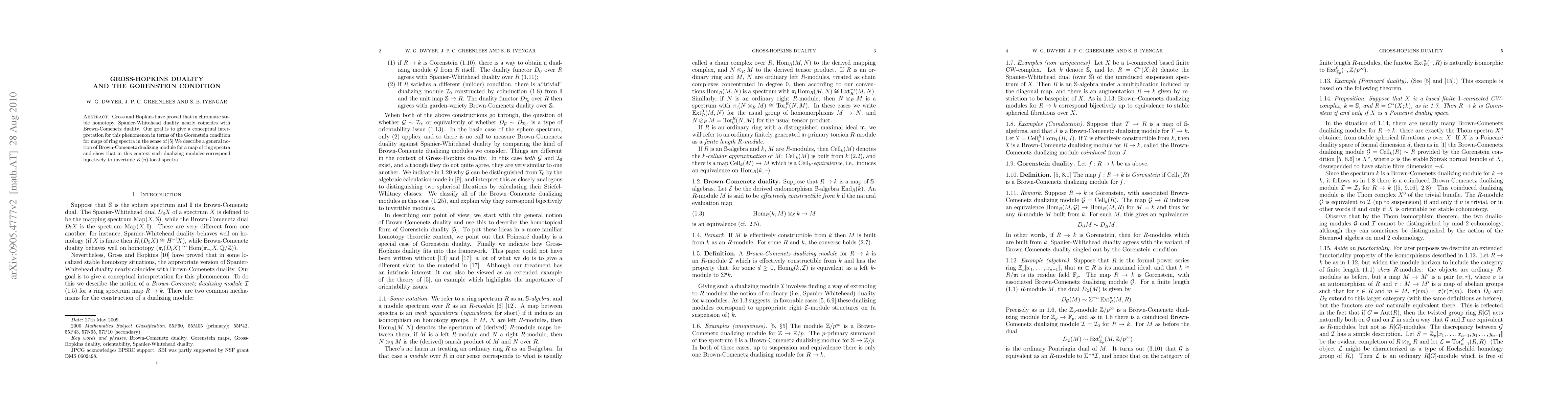 The paper establishes a conceptual link between Gross-Hopkins duality and the Gorenstein condition, showing that Spanier-Whitehead duality aligns with Brown-Comenetz duality in chromatic stable homotopy. It introduces a dualizing module for maps of ring spectra and proves a bijection between these modules and invertible K(n)-local spectra.