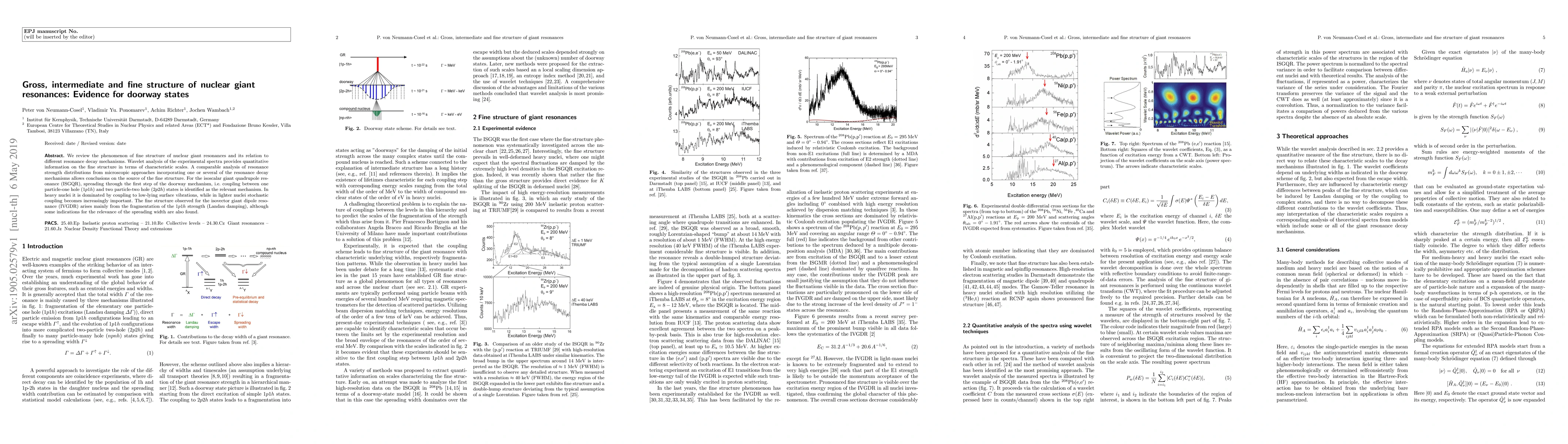 This paper reviews the fine structure of nuclear giant resonances, using wavelet analysis to identify characteristic scales and decay mechanisms. It finds that for the isoscalar giant quadrupole resonance, coupling between $1p1h$ and $2p2h$ states, especially via surface vibrations in heavy nuclei, is key, while for the isovector giant dipole resonance, Landau damping is the main driver of fine structure.