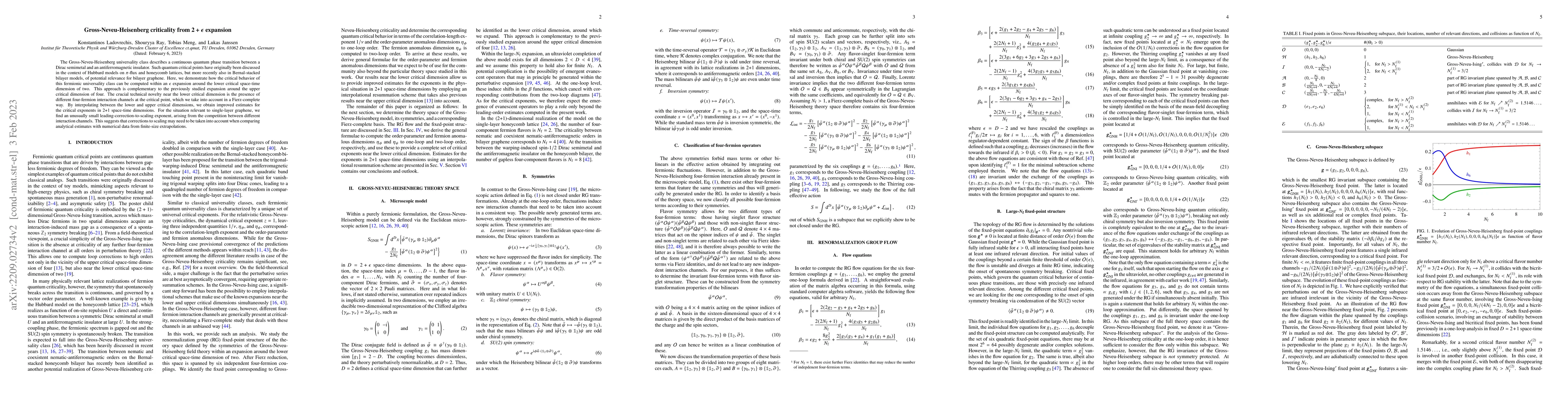 This paper investigates the critical behavior of the Gross-Neveu-Heisenberg universality class using a $2+\epsilon$ expansion, revealing different four-fermion interaction channels near the lower critical dimension. It provides improved estimates for critical exponents in 2+1 dimensions, suggesting corrections to scaling are crucial for comparing analytical estimates with numerical data.
