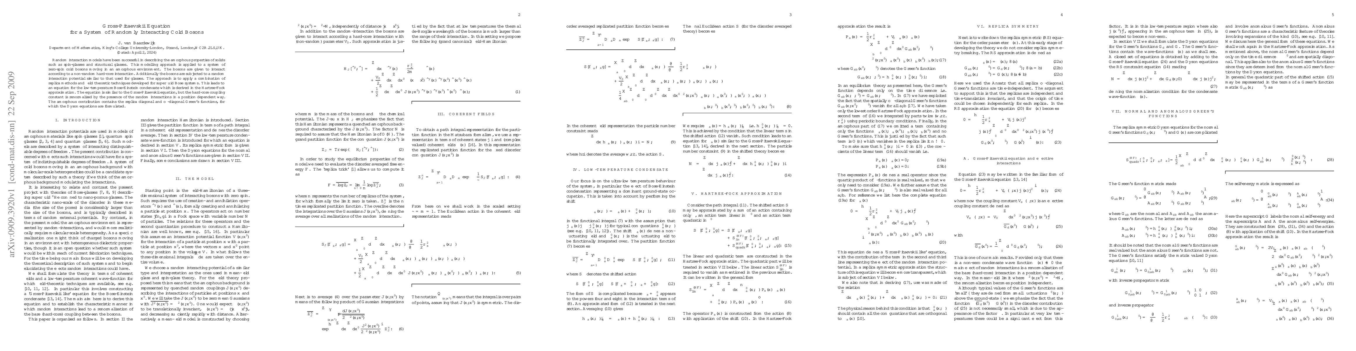 Random interaction models have been successful in describing the amorphous properties of solids such as spin-glasses and structural glasses. This modelling approach is applied to a system of zero-spin cold bosons moving in an amorphous environment. The bosons are given to interact according to a non-random hard-core interaction. Additionally the bosons are subjected to a random interaction potential similar to that used for glasses. The approach is to apply a combination of replica methods and field theoretic techniques developed for superfluid Bose systems. This leads to an equation for the low-temperature Bose-Einstein condensate which is derived in the Hartree-Fock approximation. The equation is similar to the Gross-Pitaevskii equation, but the hard-core coupling constant is renormalised by the presence of the random interactions in a position dependent way. The amorphous contribution contains the replica diagonal and off-diagonal Green's functions, for which the Dyson equations are formulated.