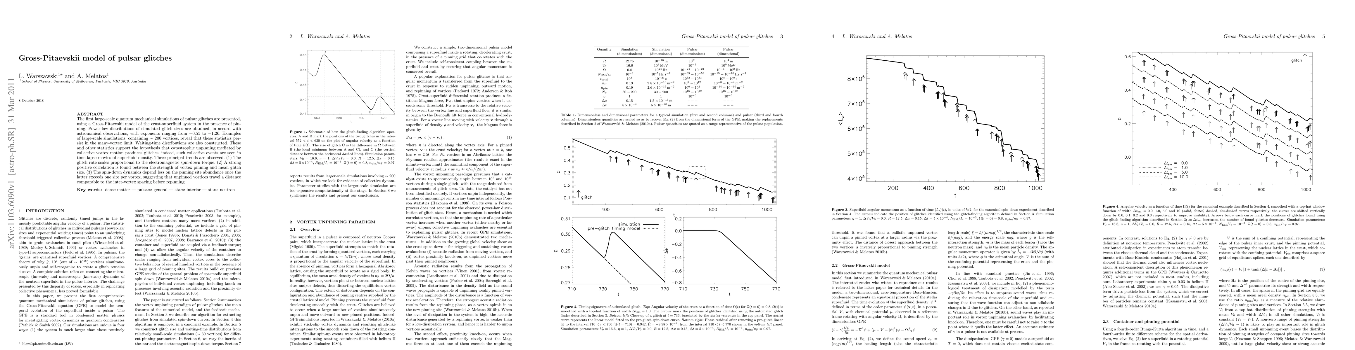 This research presents quantum mechanical simulations using a Gross-Pitaevskii model to simulate pulsar glitches, finding power-law distributions matching astronomical observations. The study supports the hypothesis that collective vortex motion unpinning causes glitches, showing trends such as proportional glitch rate to electromagnetic spin-down torque and a correlation between vortex pinning strength and mean glitch size.
