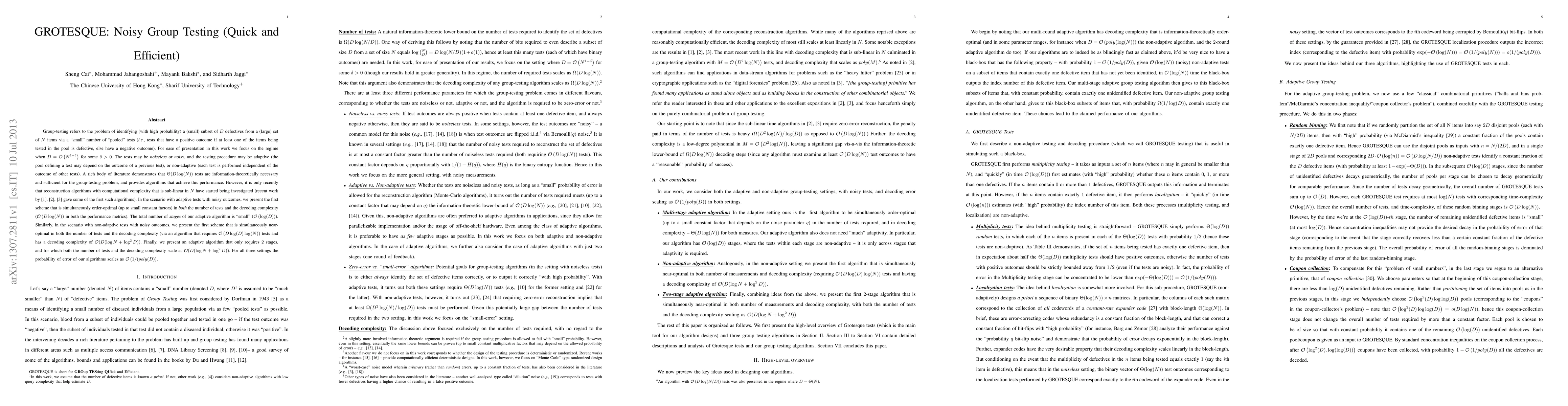 Group-testing refers to the problem of identifying (with high probability) a (small) subset of $D$ defectives from a (large) set of $N$ items via a "small" number of "pooled" tests. For ease of presentation in this work we focus on the regime when $D = \cO{N^{1-\gap}}$ for some $\gap > 0$. The tests may be noiseless or noisy, and the testing procedure may be adaptive (the pool defining a test may depend on the outcome of a previous test), or non-adaptive (each test is performed independent of the outcome of other tests). A rich body of literature demonstrates that $\Theta(D\log(N))$ tests are information-theoretically necessary and sufficient for the group-testing problem, and provides algorithms that achieve this performance. However, it is only recently that reconstruction algorithms with computational complexity that is sub-linear in $N$ have started being investigated (recent work by \cite{GurI:04,IndN:10, NgoP:11} gave some of the first such algorithms). In the scenario with adaptive tests with noisy outcomes, we present the first scheme that is simultaneously order-optimal (up to small constant factors) in both the number of tests and the decoding complexity ($\cO{D\log(N)}$ in both the performance metrics). The total number of stages of our adaptive algorithm is "small" ($\cO{\log(D)}$). Similarly, in the scenario with non-adaptive tests with noisy outcomes, we present the first scheme that is simultaneously near-optimal in both the number of tests and the decoding complexity (via an algorithm that requires $\cO{D\log(D)\log(N)}$ tests and has a decoding complexity of {${\cal O}(D(\log N+\log^{2}D))$}. Finally, we present an adaptive algorithm that only requires 2 stages, and for which both the number of tests and the decoding complexity scale as {${\cal O}(D(\log N+\log^{2}D))$}. For all three settings the probability of error of our algorithms scales as $\cO{1/(poly(D)}$.