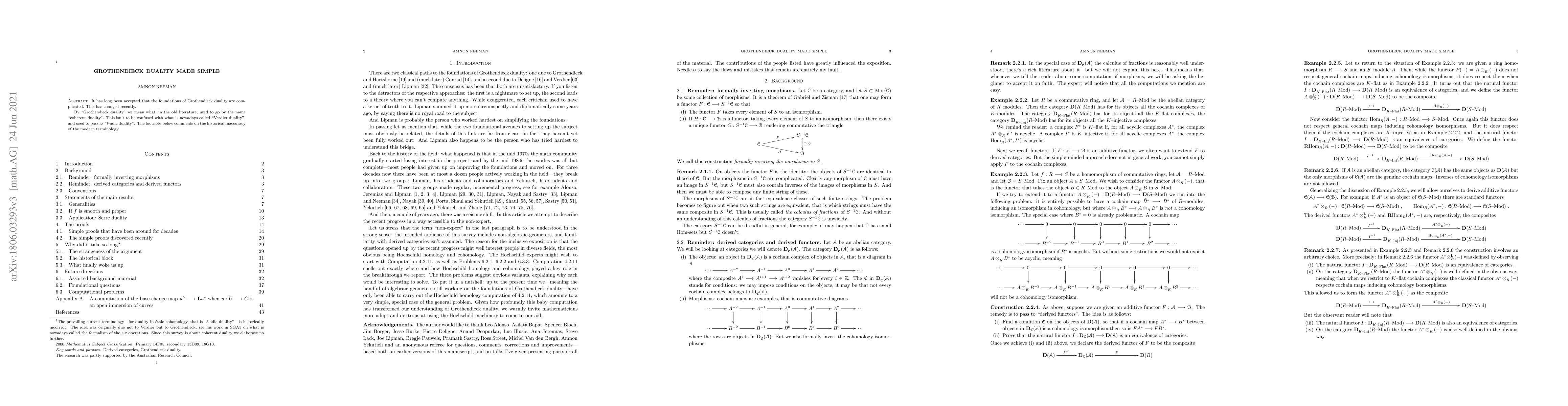 This paper simplifies the complex foundations of Grothendieck duality, previously known as coherent duality, distinguishing it from modern "Verdier duality" or "$\ell$-adic duality". It aims to clarify and make accessible the core principles of Grothendieck duality.